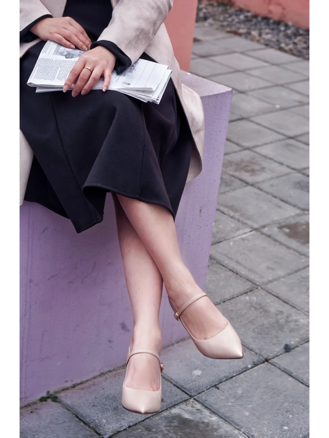 👠鞋:honeyGIRL×PORON,性价比很高的牌子,浅米色适合春季穿搭,鞋子很软,自带减震缓冲,虽然是高跟鞋,我穿着爬坡上坎也不累脚。