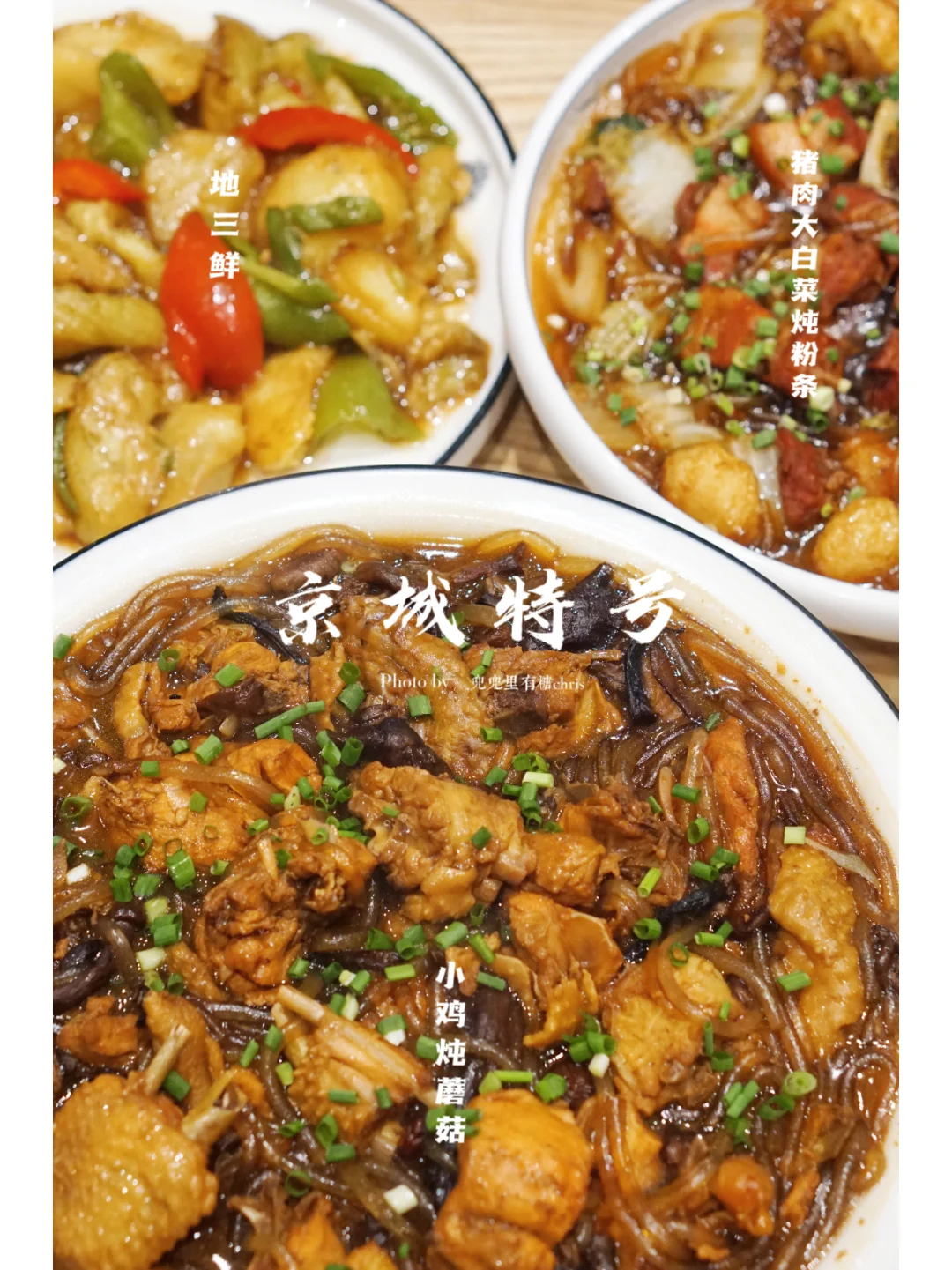 比如猪肉炖粉条,比如小鸡炖蘑菇……