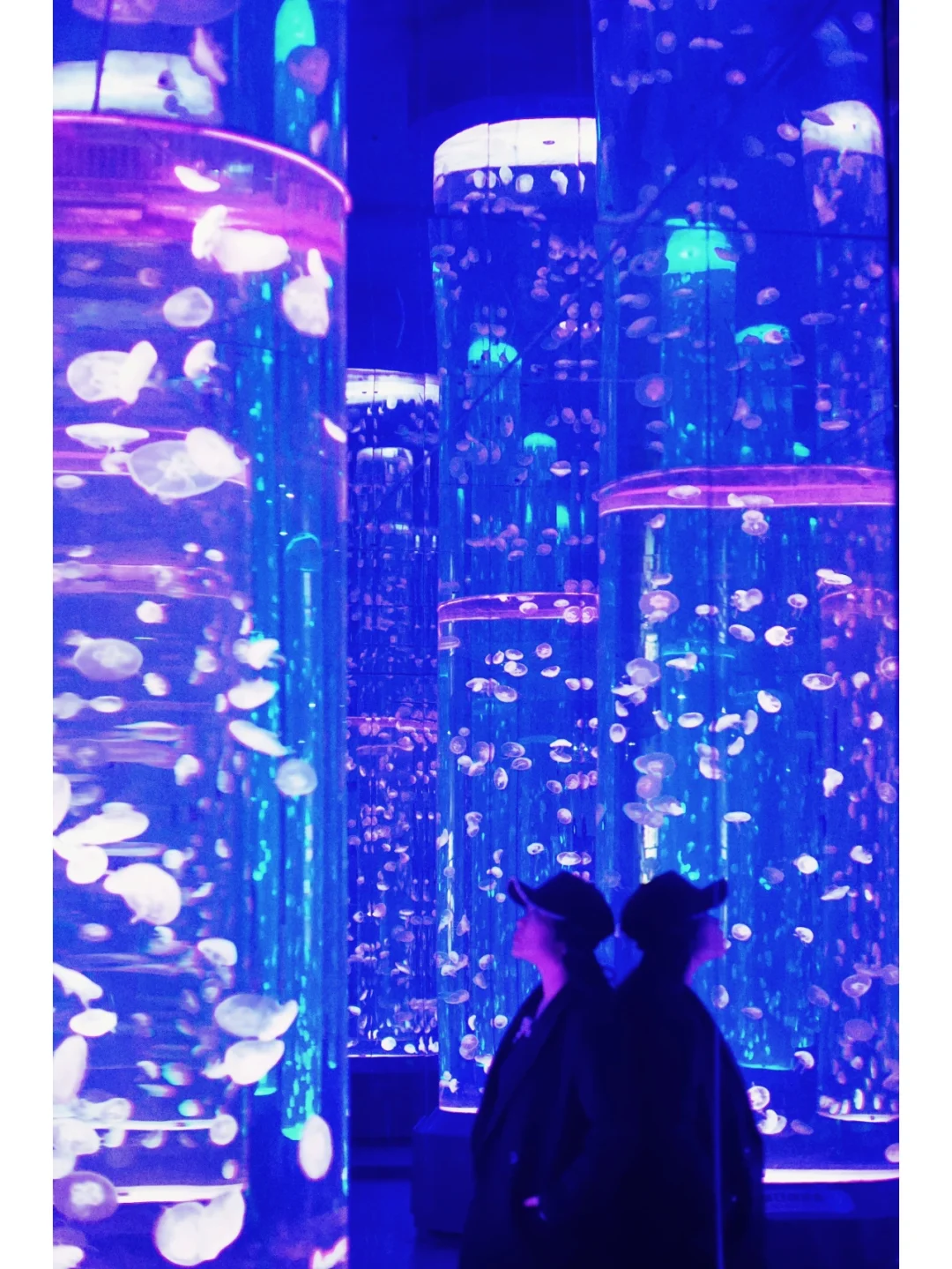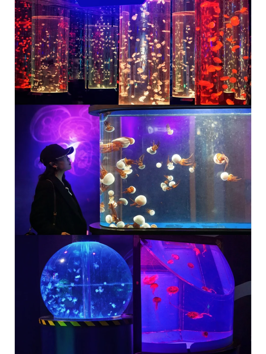 ④水母馆:两层楼,在大门进门处左手边,一定要留够时间来看,进门就是水母万花筒,灯光会变幻多种颜色,很漂亮;