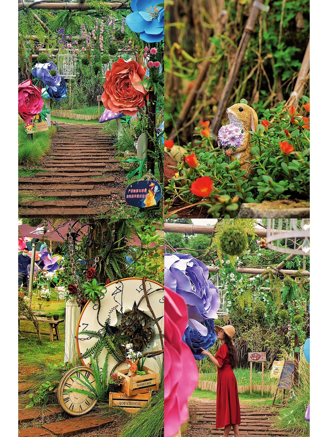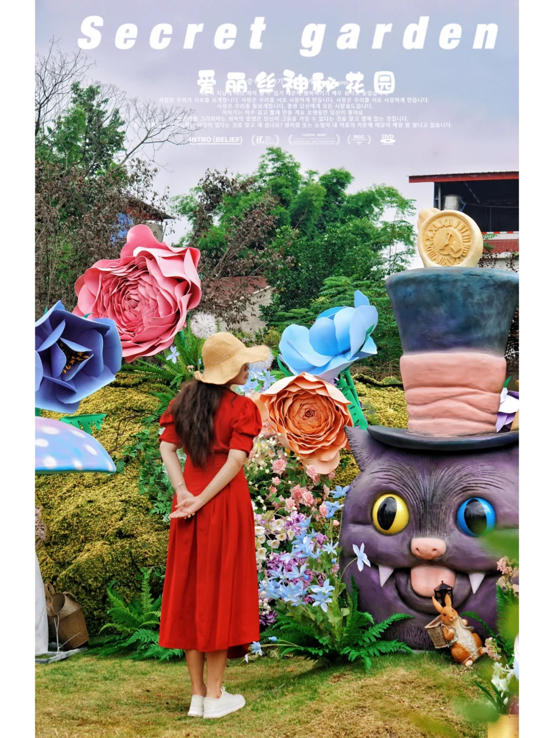 彩色的花朵🌸、鲜艳的蘑菇屋🍄、戴帽子的柴郡猫🐱 感觉自己坠入了爱丽丝的神秘花园~