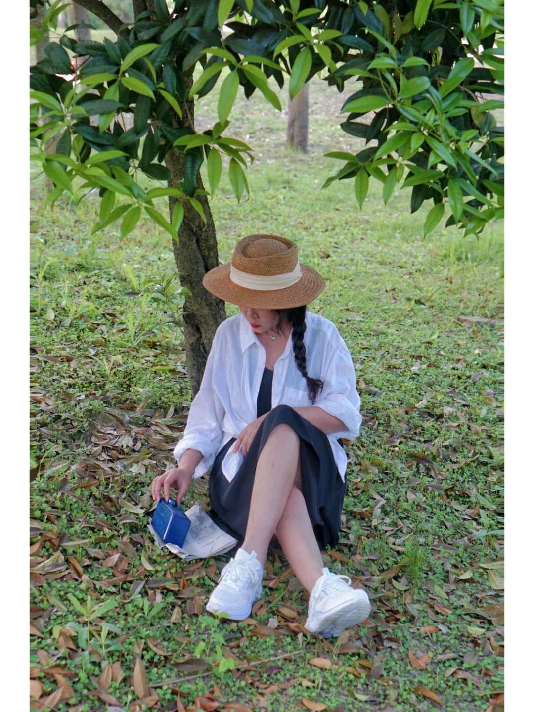 🥼防晒衣:春日阳光明媚,也要注意防晒,今日经典小黑裙外套衬衫款白色防晒衣,休闲气质;
