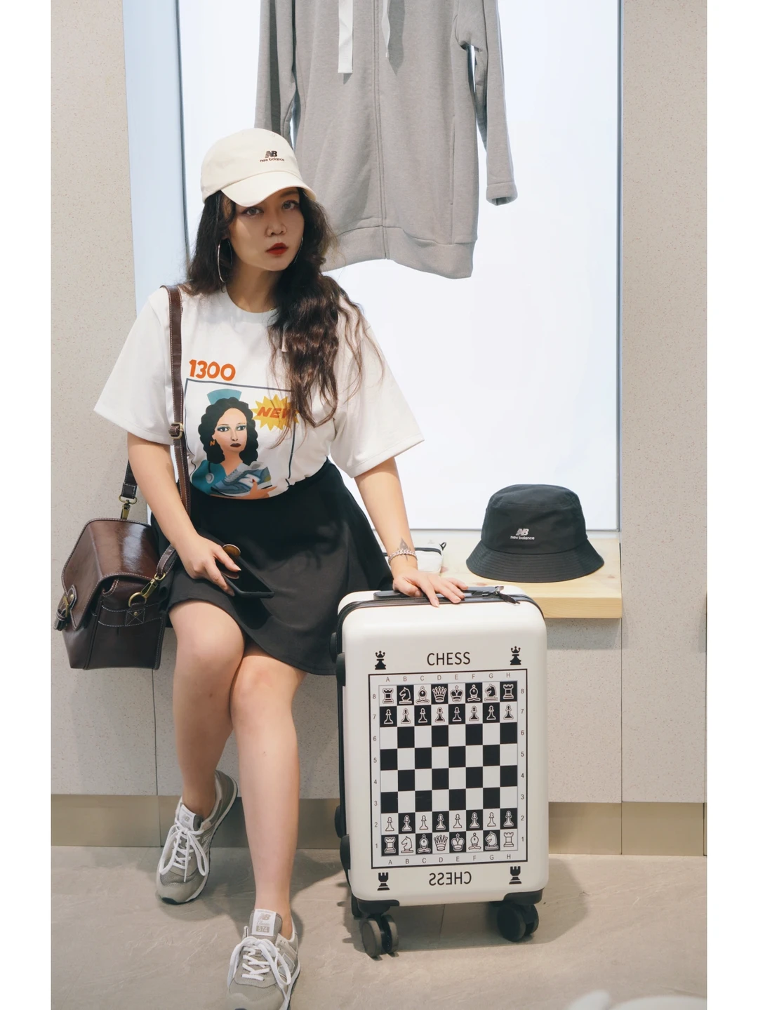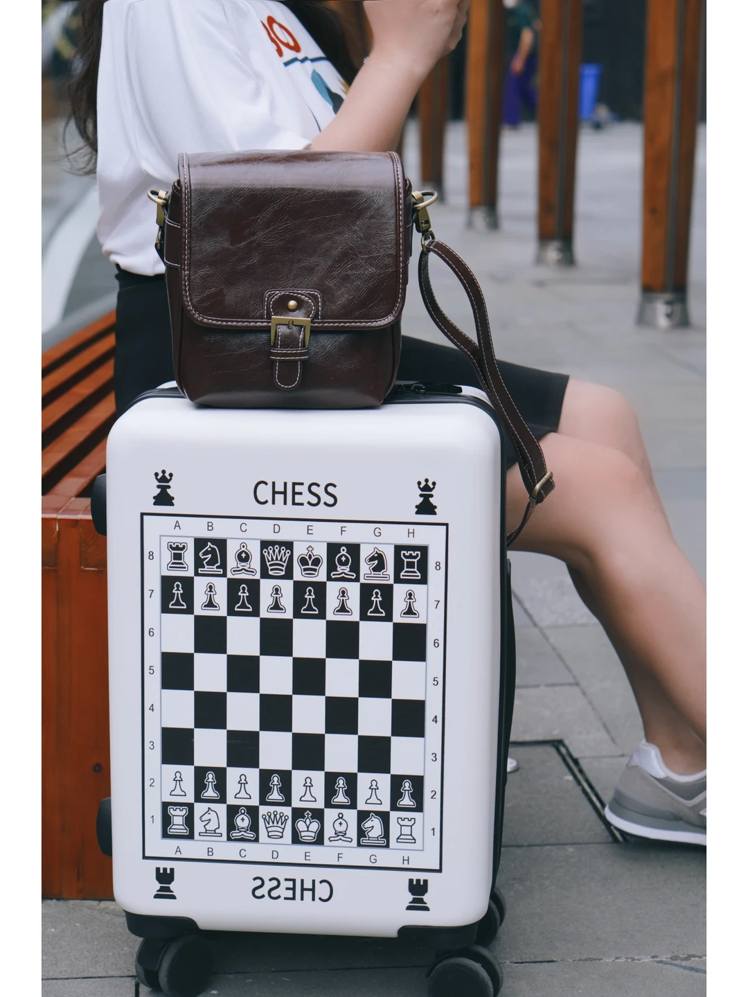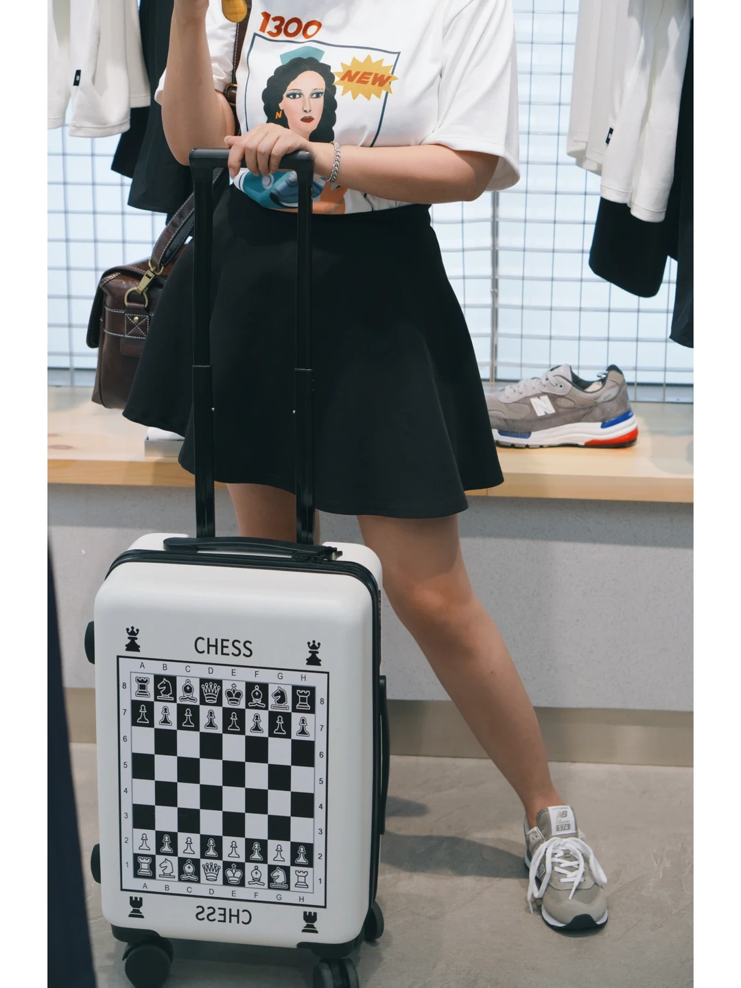 旅行箱:新入手的棋盘格行李箱,黑白经典色,质量和滑轮都很好用,拖着逛了一天街都没压力~