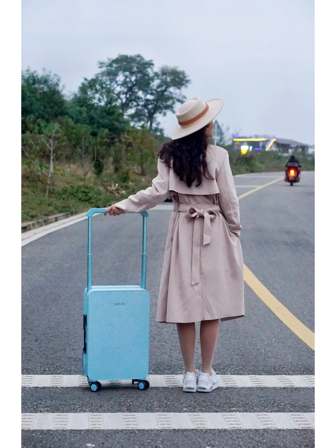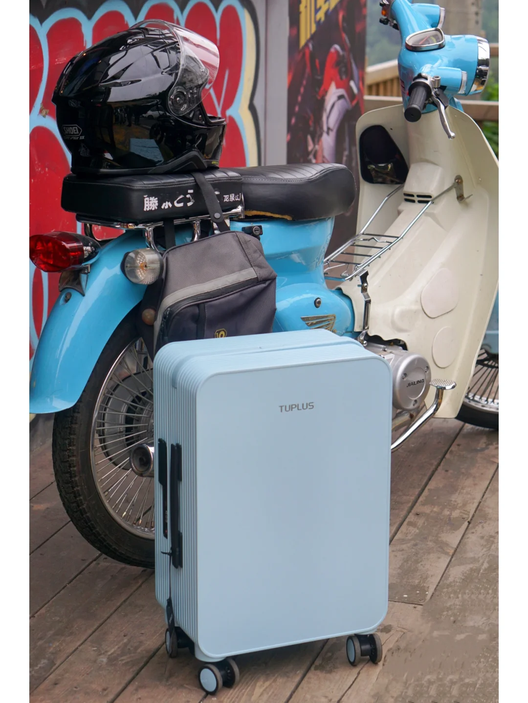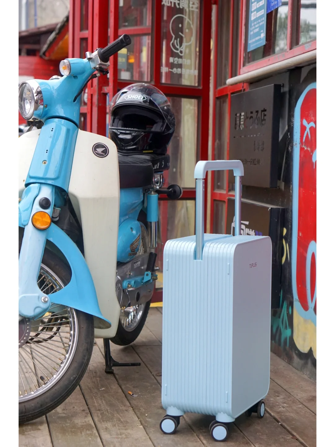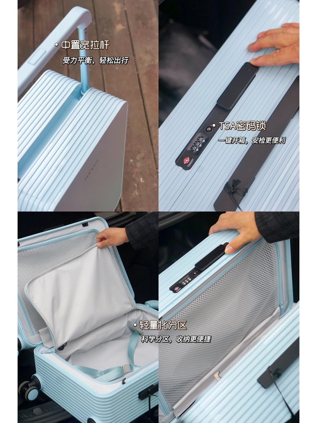 这次我买的是20寸的悠然假日冰川蓝,今年的限定系列~到手的第一瞬间我就被它的颜值征服了✨这是什么高级的神仙蓝色,配上同款蓝色小摩托也太出片了📸虽然只有20寸,但是超级能装‼️而且因为拉杆不是普通的,而是中置宽拉杆,不仅推起来更轻松,更稳,行李箱内部也不会有凸起的拉杆,空间变得更平整好收纳了🆒可以说是让我狠狠地爱上了❤️