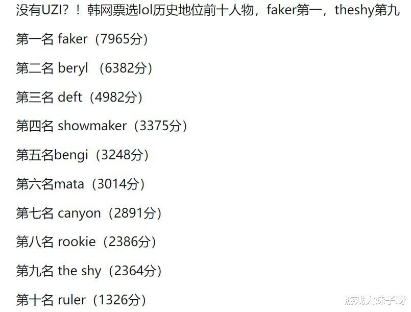 LCK网友发起投票,LOL历史地位排行榜,Uzi连前10都没进,这份由韩网票选出的“LOL历史地位前十”榜单一出,立刻在中韩玩家社区掀起巨大争议,尤其是Uzi仅排在第15名,甚至未能进入前十,更是成为舆论焦点。