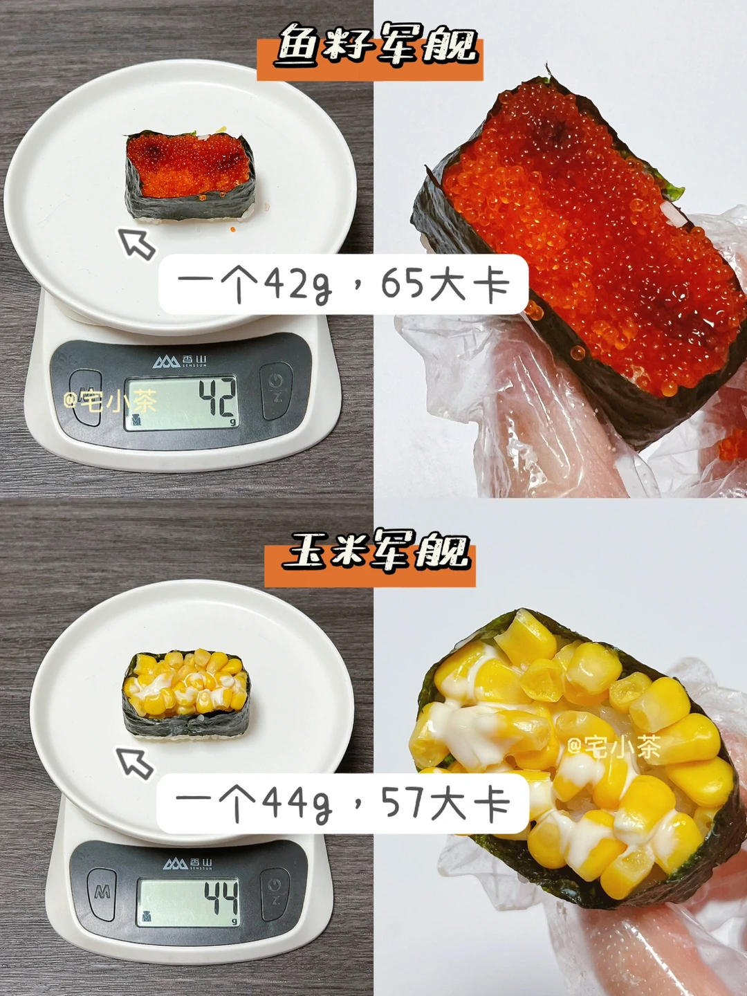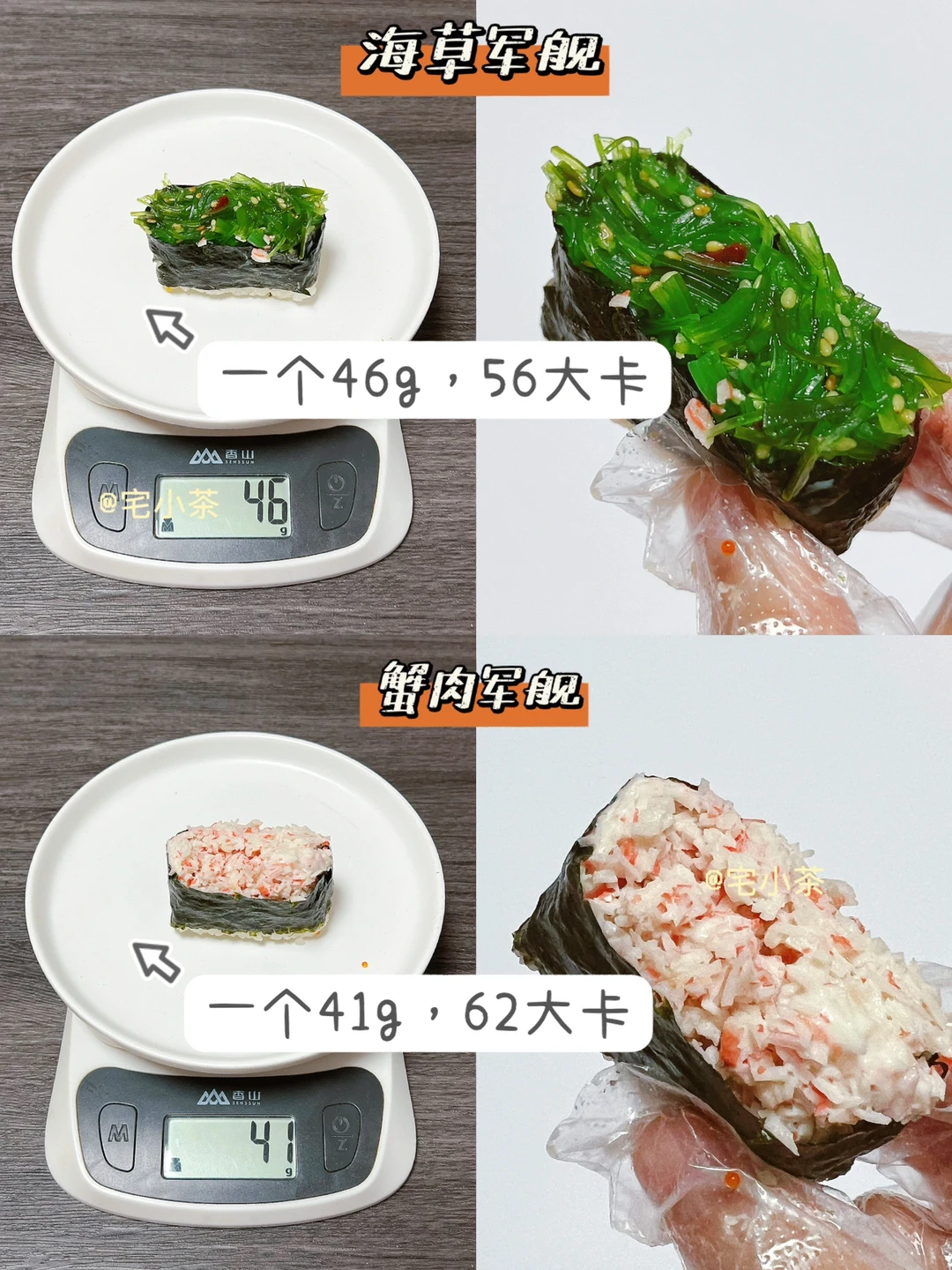 蟹肉军舰:一个41g,62大卡