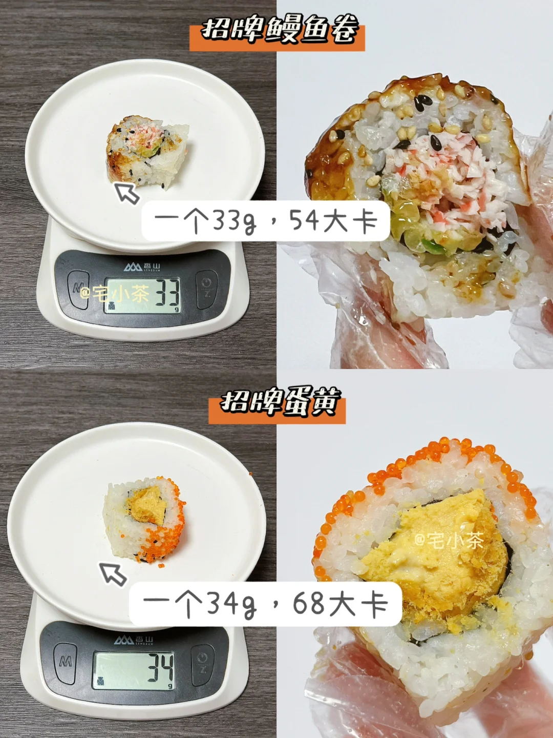 招牌鳗鱼卷:一个33g,54大卡