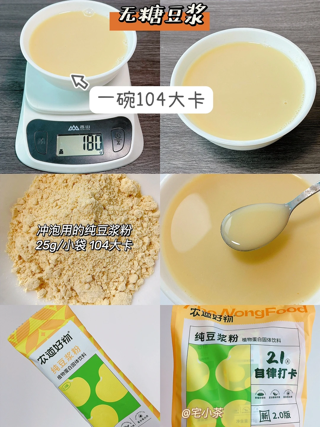 无糖豆浆:一碗104大卡