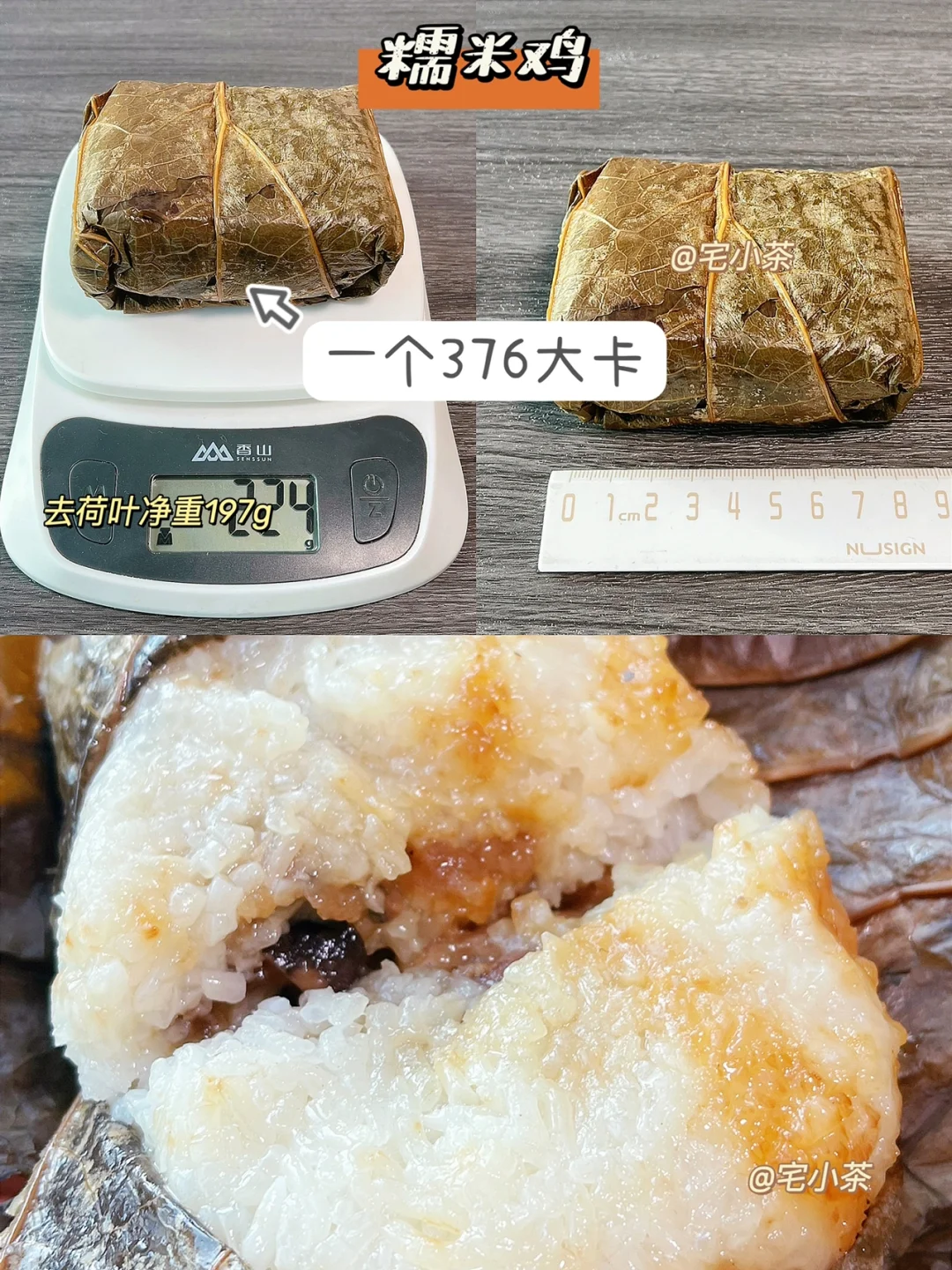 糯米鸡:一个197g,376大卡