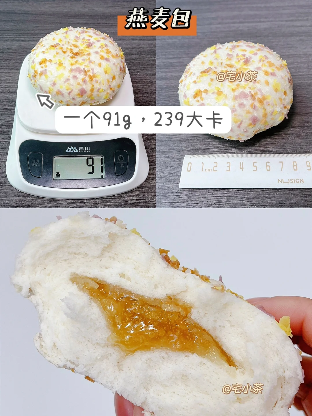 燕麦包:一个91g,239大卡