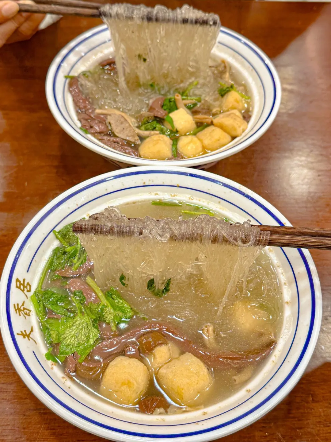 汤头都是每天现熬的,奶白浓郁透着鲜味,红薯粉丝爽滑筋道,加点辣油,香得没谱了!