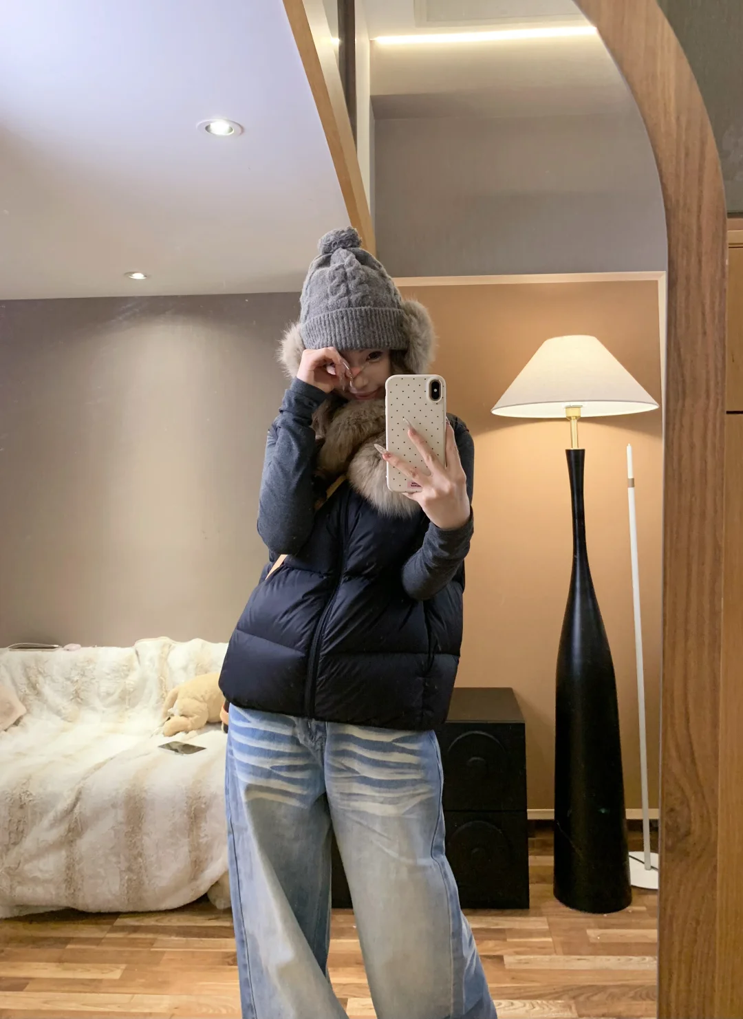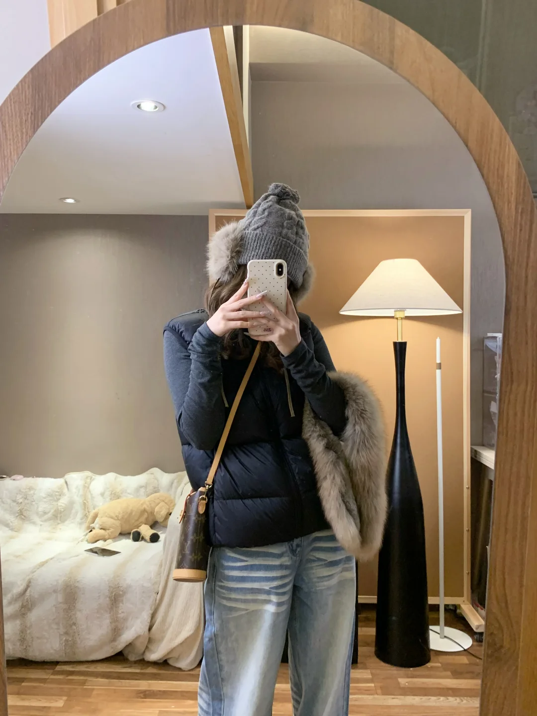初雪穿搭 慵懒感穿搭 蘑糯糯 蘑糯糯新品 马甲搭配 黑色背心 牛仔裤 韩系穿搭 韩女 马甲背心