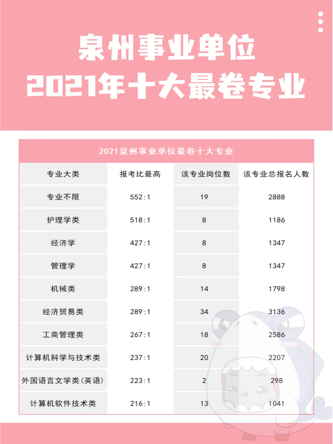 泉州事业单位十大zui卷专业:
