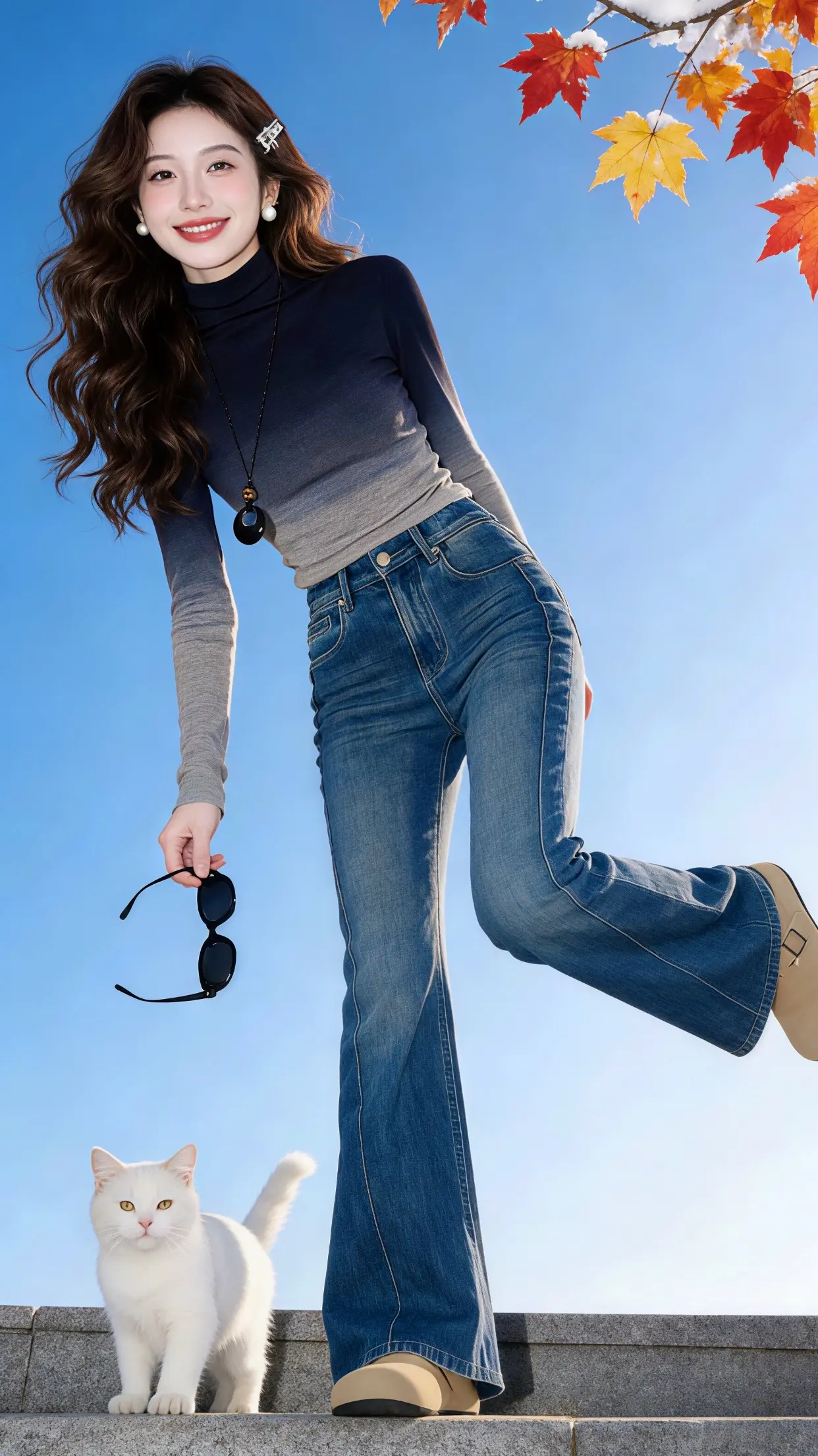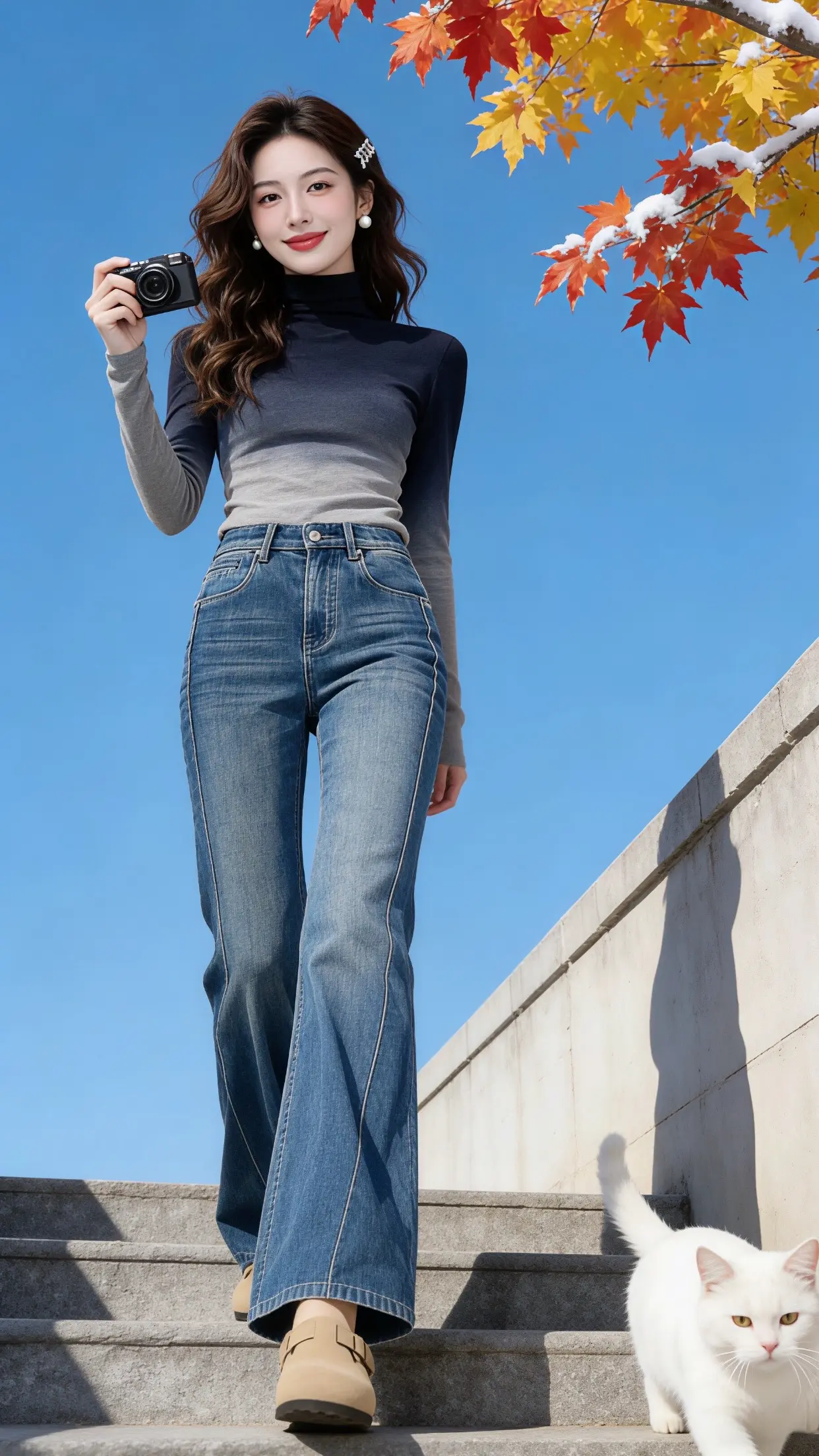 阔腿牛仔裤 保暖又好看 过年穿什么 新年穿搭 显高显瘦显腿长