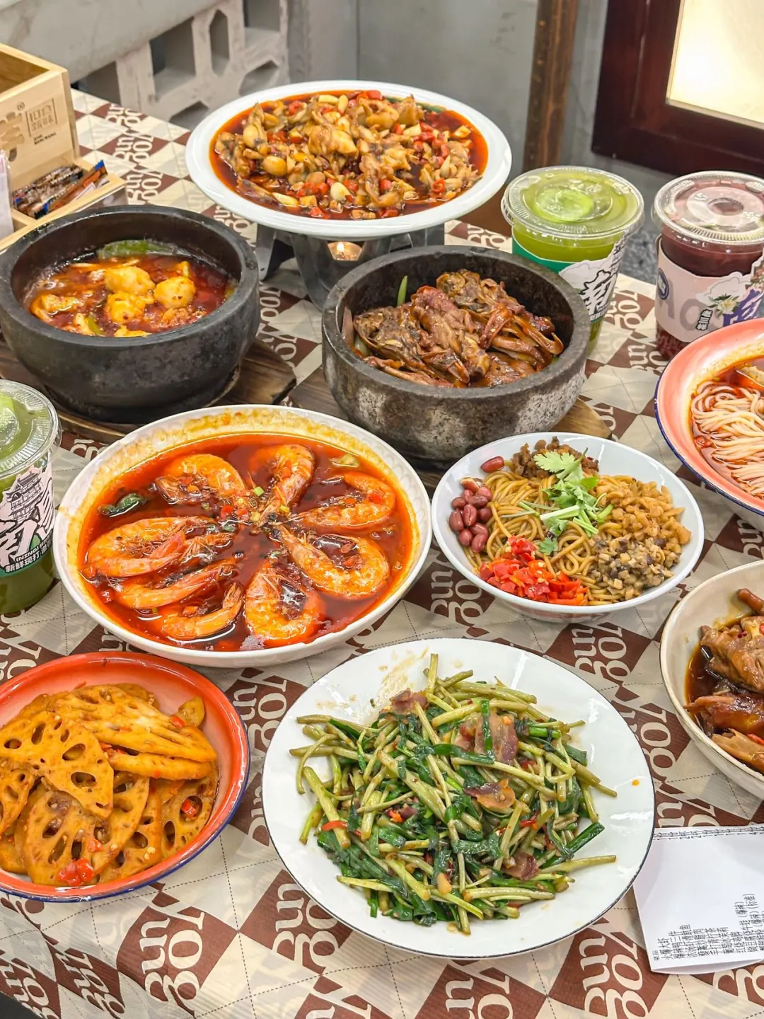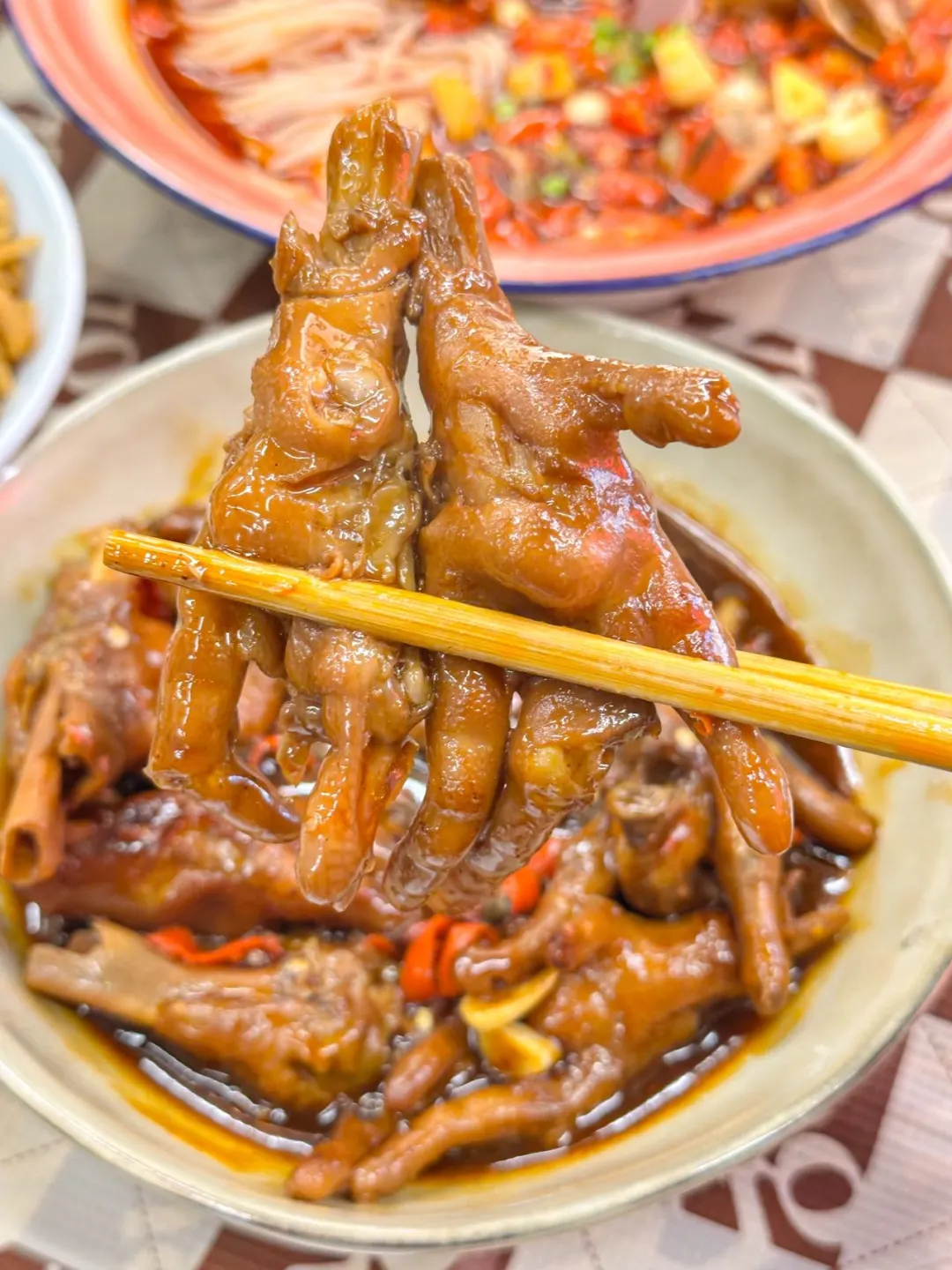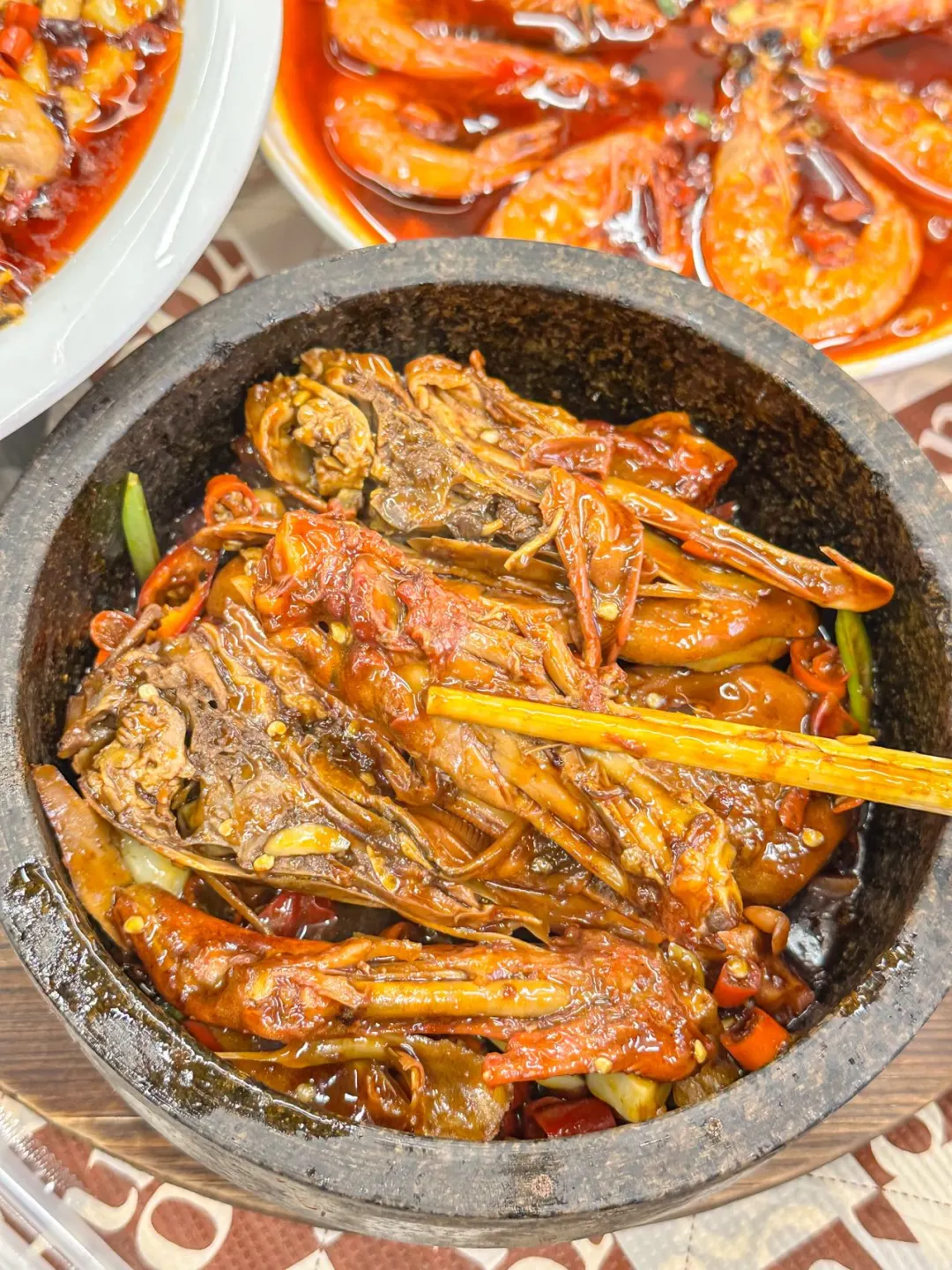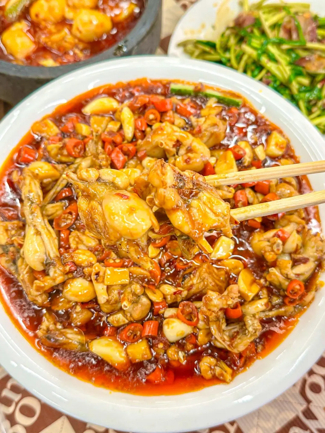嫩豆腐牛蛙、蟹脚捞粉、红烧鸡脚、爆辣鸭三件…一桌都是下饭菜,炫饭两大碗