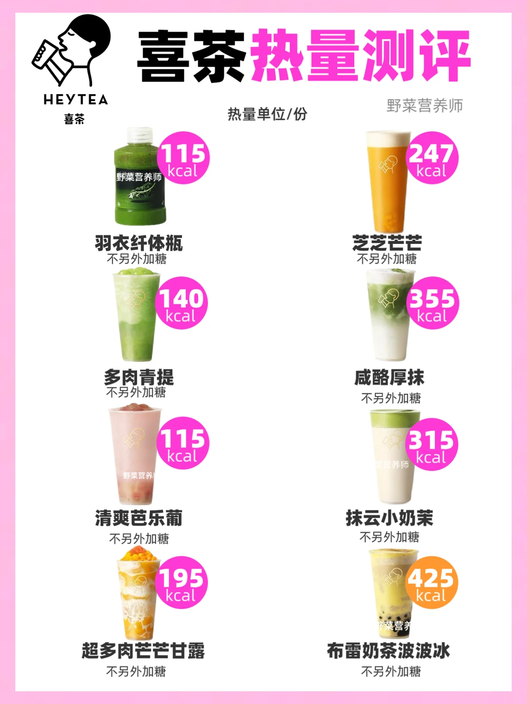 喜茶热量测评🔥点单攻略、减脂人狂喜‼️