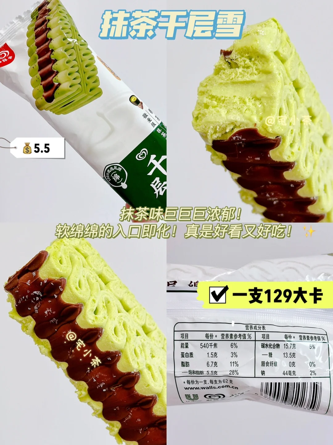 ➡️抹茶千层雪 129大卡 62克 💰5.5