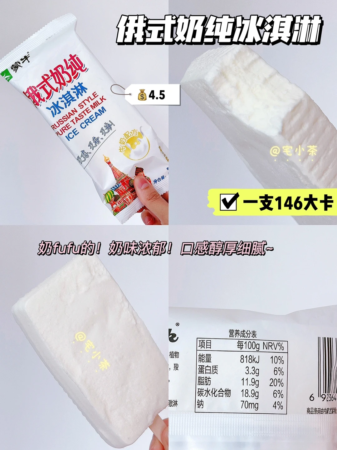 ➡️俄式奶纯冰淇淋 146大卡 75克 💰4.5