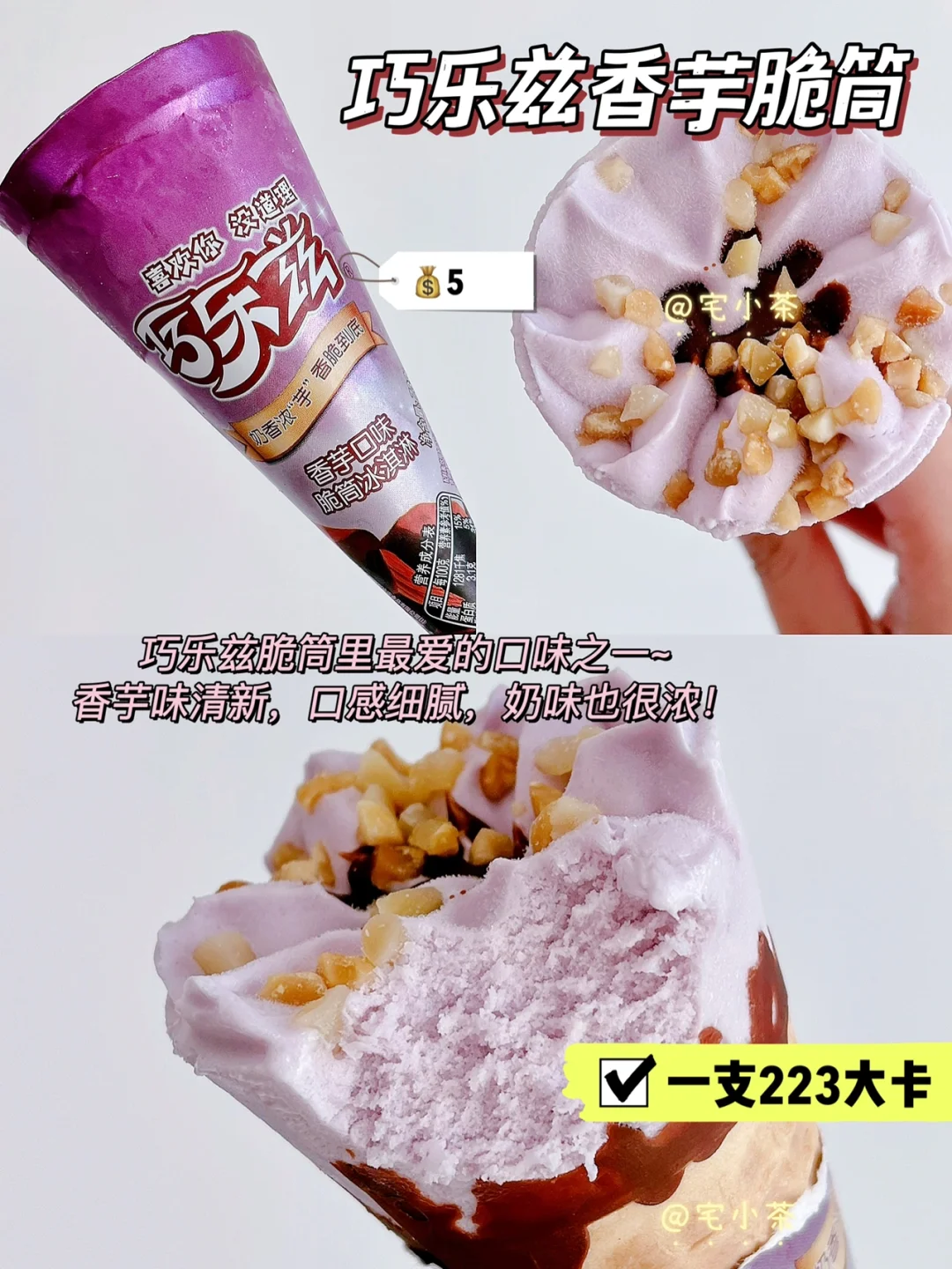 ➡️巧乐兹香芋脆筒 223大卡 73克 💰5