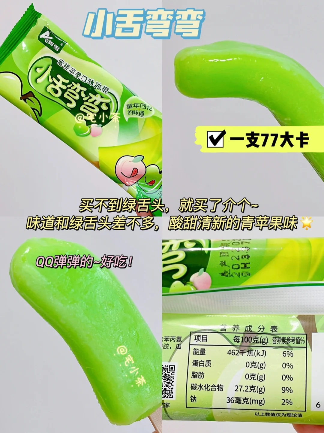 味道和绿舌头差不多,酸甜清新的青苹果味,QQ弹弹的~好吃!