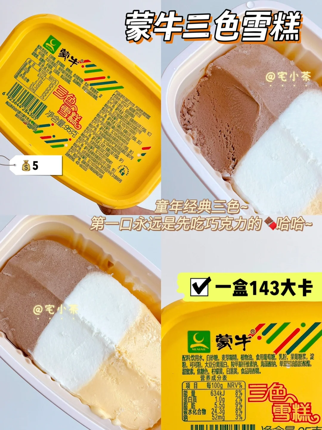 ➡️蒙牛三色雪糕 143大卡 95克 💰5