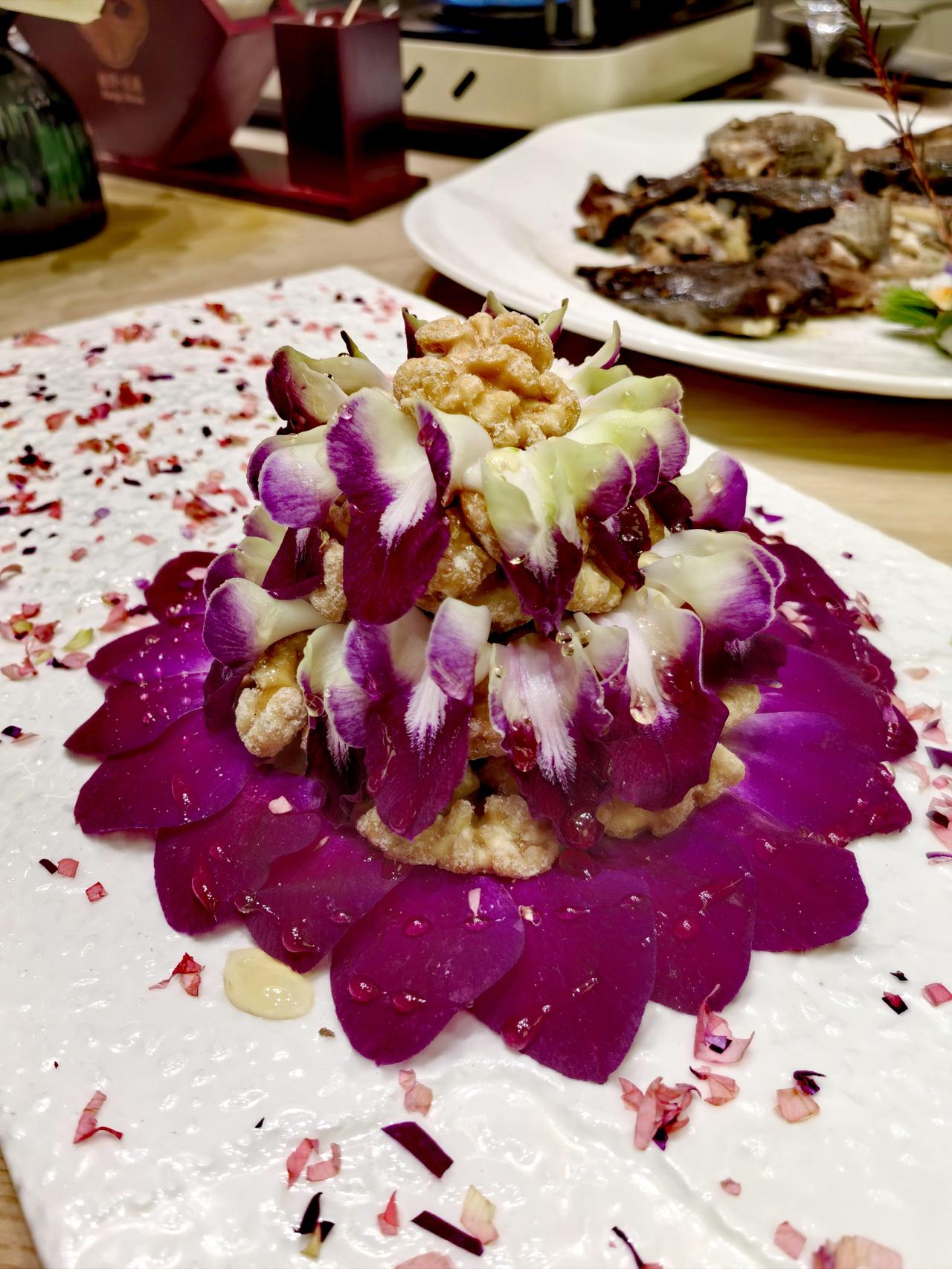 兰香桃仁:以兰之幽香衬桃仁之脆爽,开胃前菜的颜值担当。