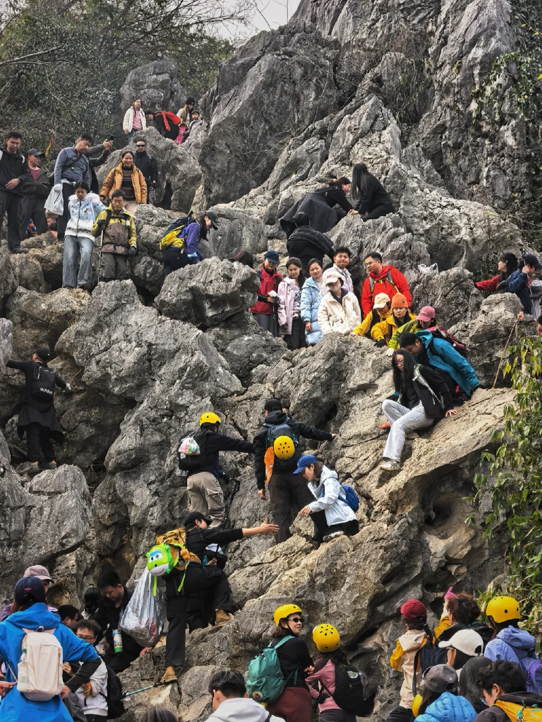 山顶的“石瀑”有点难度需要垂直攀爬