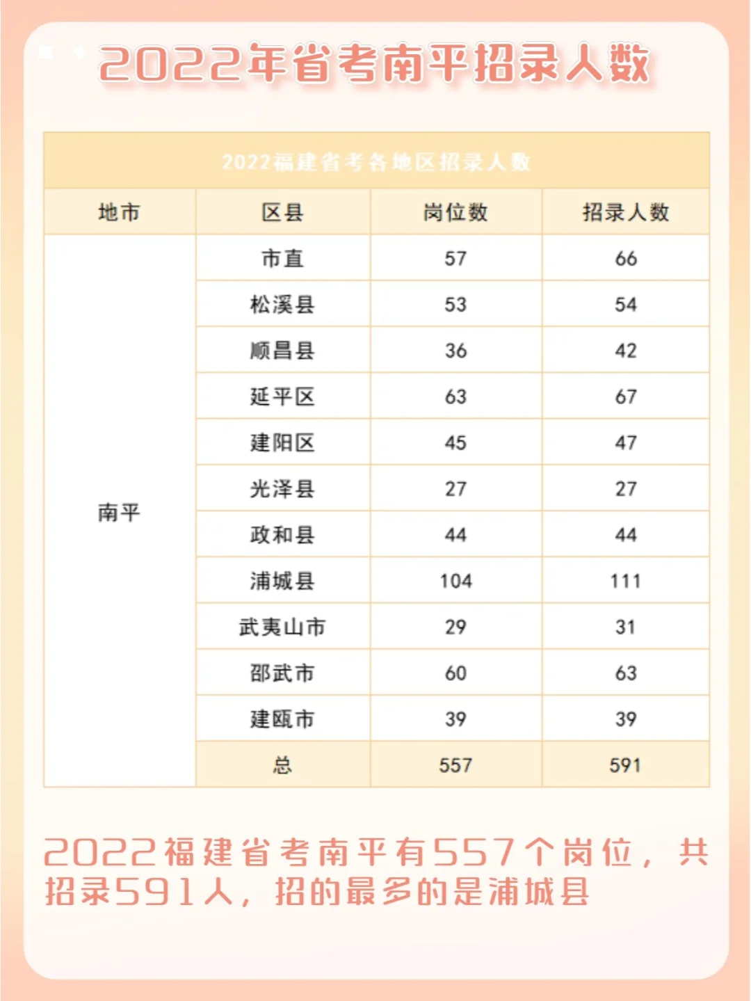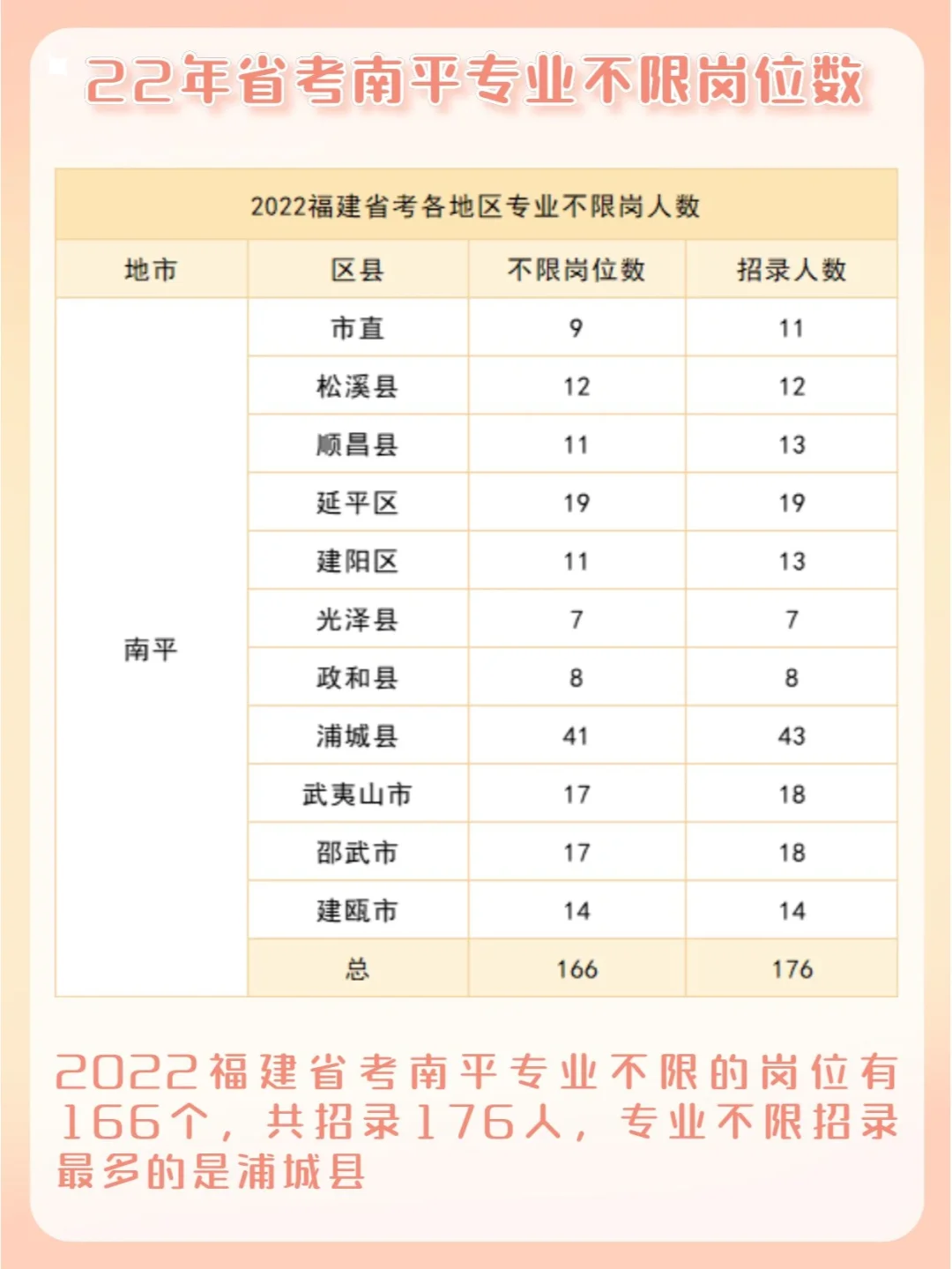 🌟2022福建省考南平地区有557个岗位,共招591人,其中专业不限岗位数有166个(共176人)