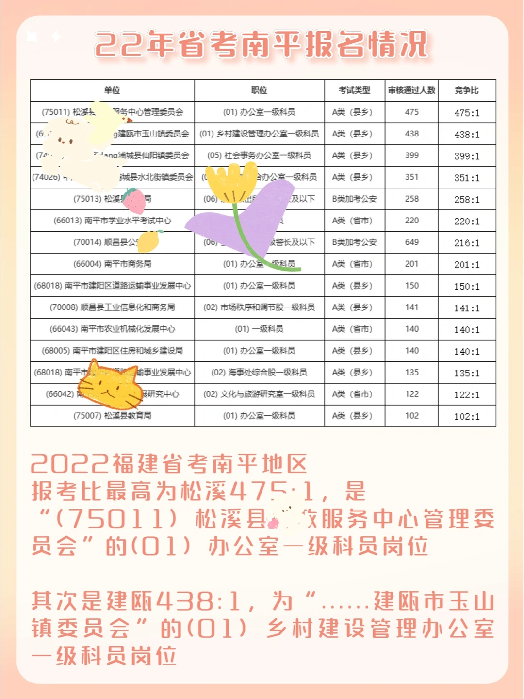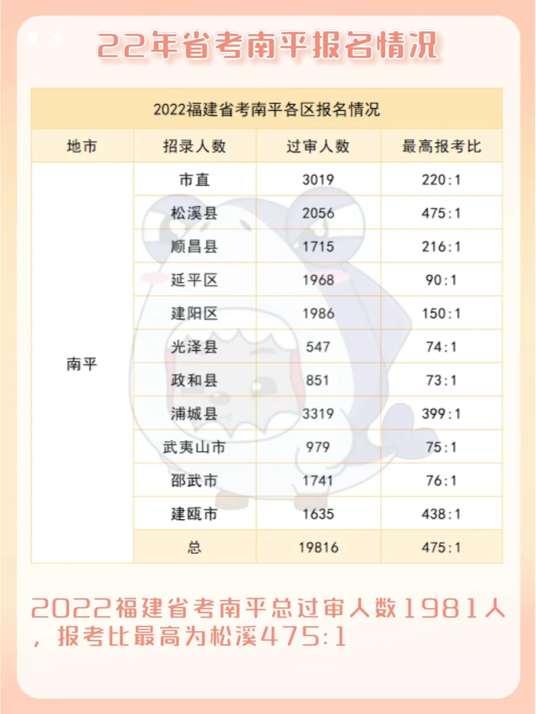 🌟2022福建省考南平总过审人数1981人,报考比最高为松溪475:1