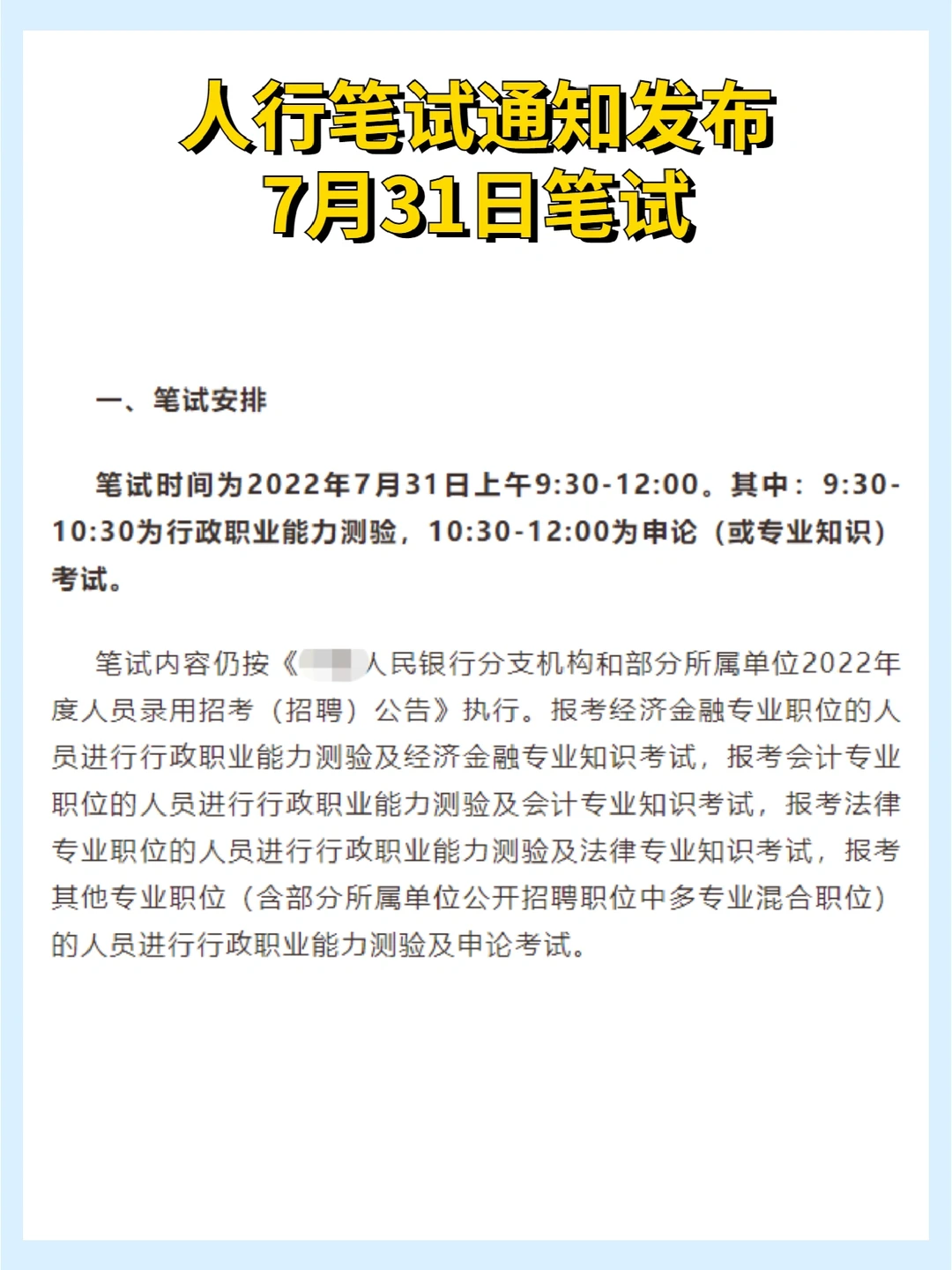 人行笔试分为经济金融岗和非经济金融岗。笔试时间为上午9:30-12:00。