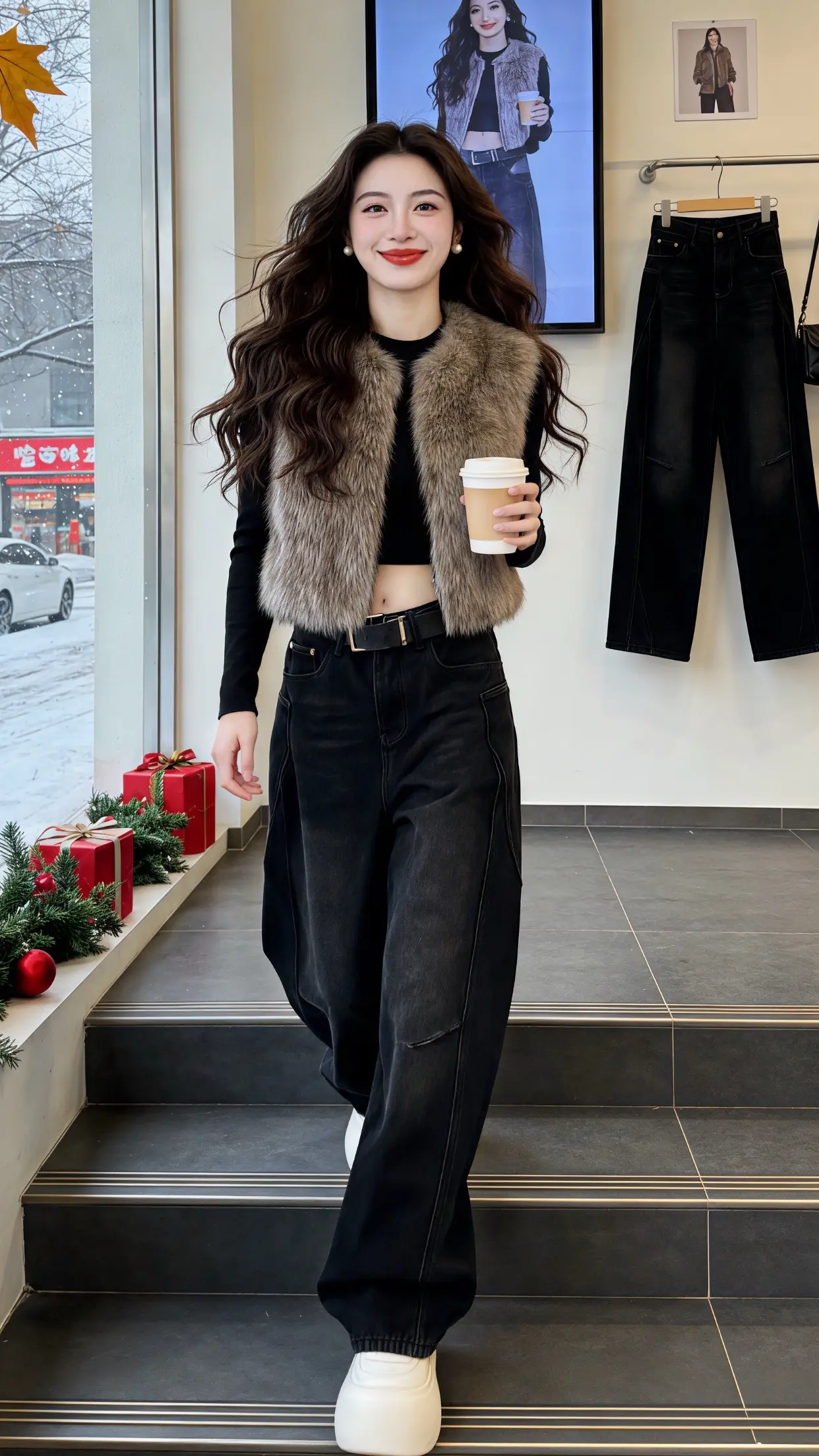 百搭裤子加绒牛仔裤 小个子梨形身材穿搭秋冬穿搭测评秋冬穿搭显贵公式