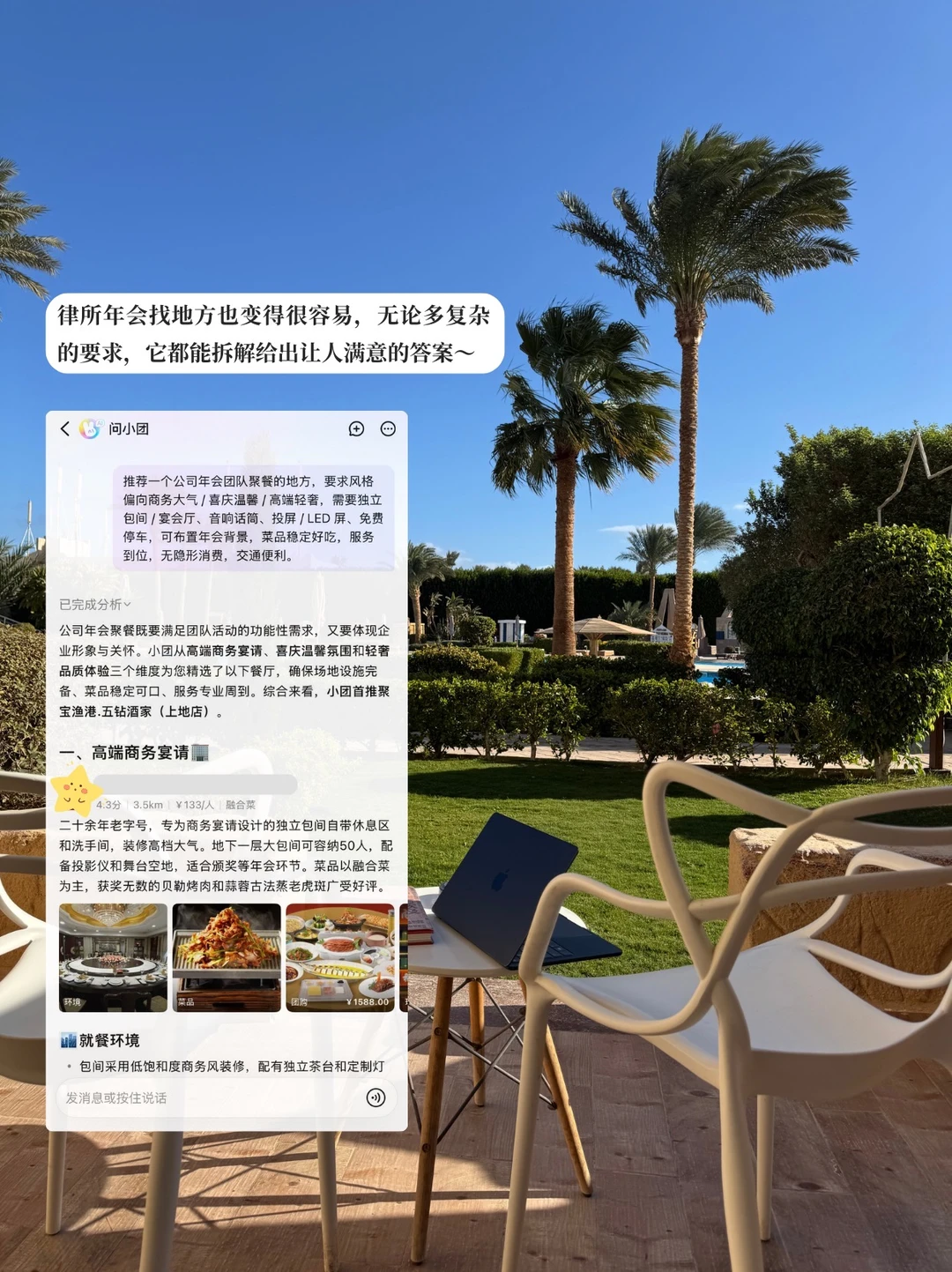 ④而且小团还很擅长解决刁钻问题~ 给它个长难句帮忙给律所年会找地方也不在话下哈哈哈哈