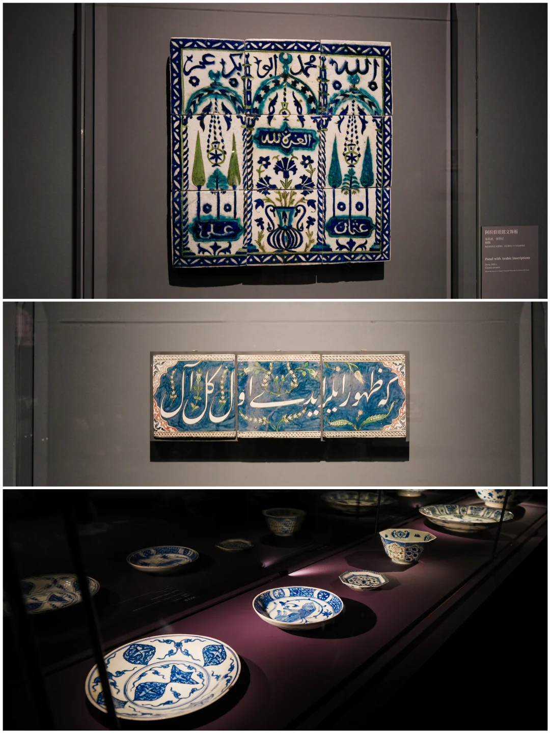 ⚱️伊朗板块:蓝紫色调氛围感拉满,诗会图釉面陶板再现古人斗诗场景,承载着文学与诗歌意象,见证丝绸之路的美学交融。