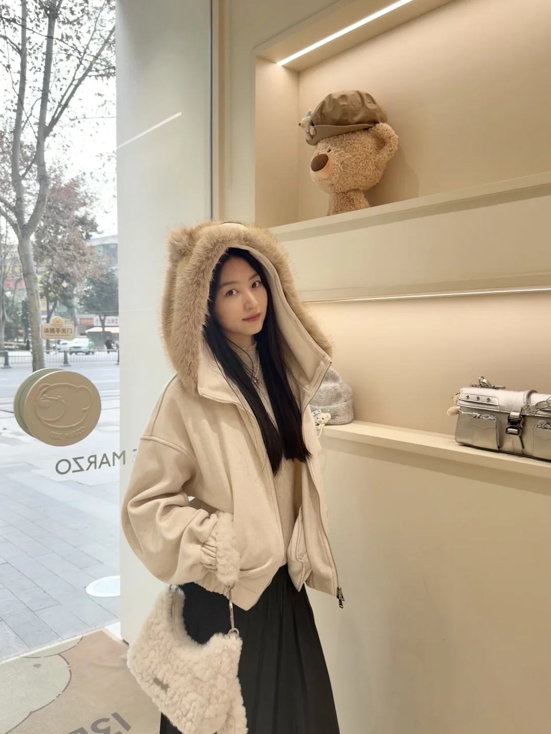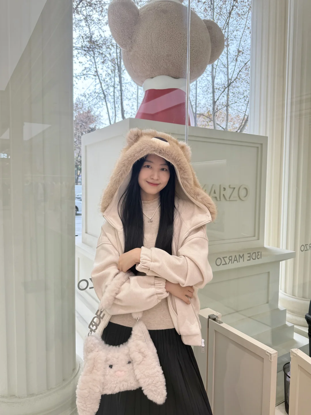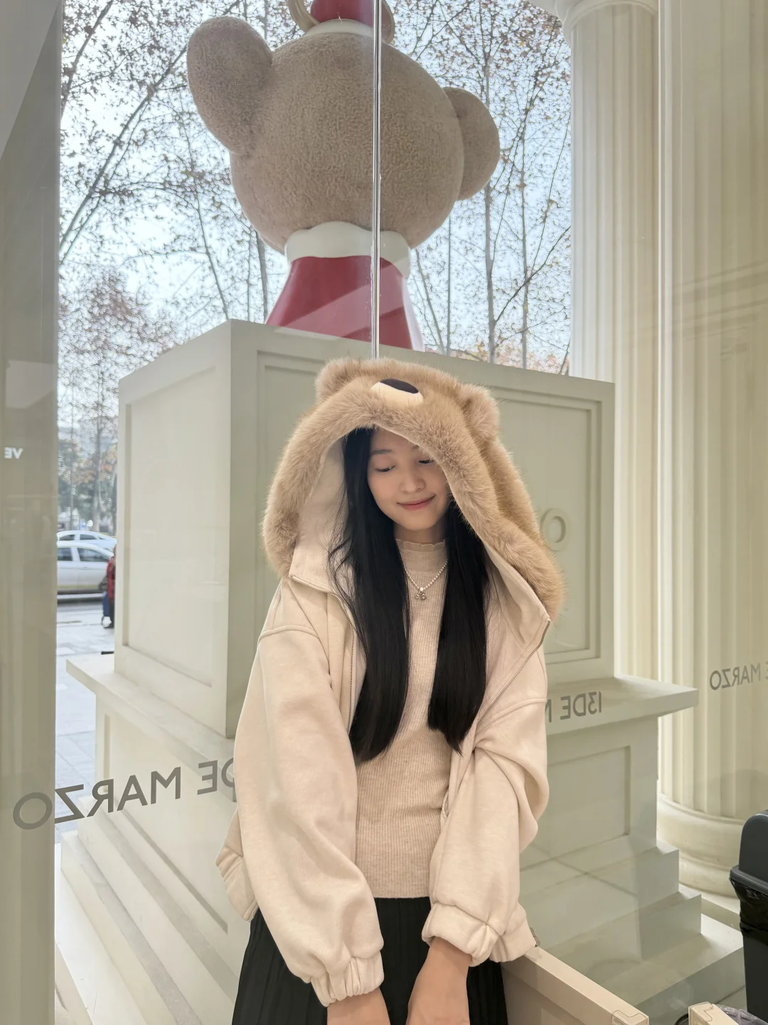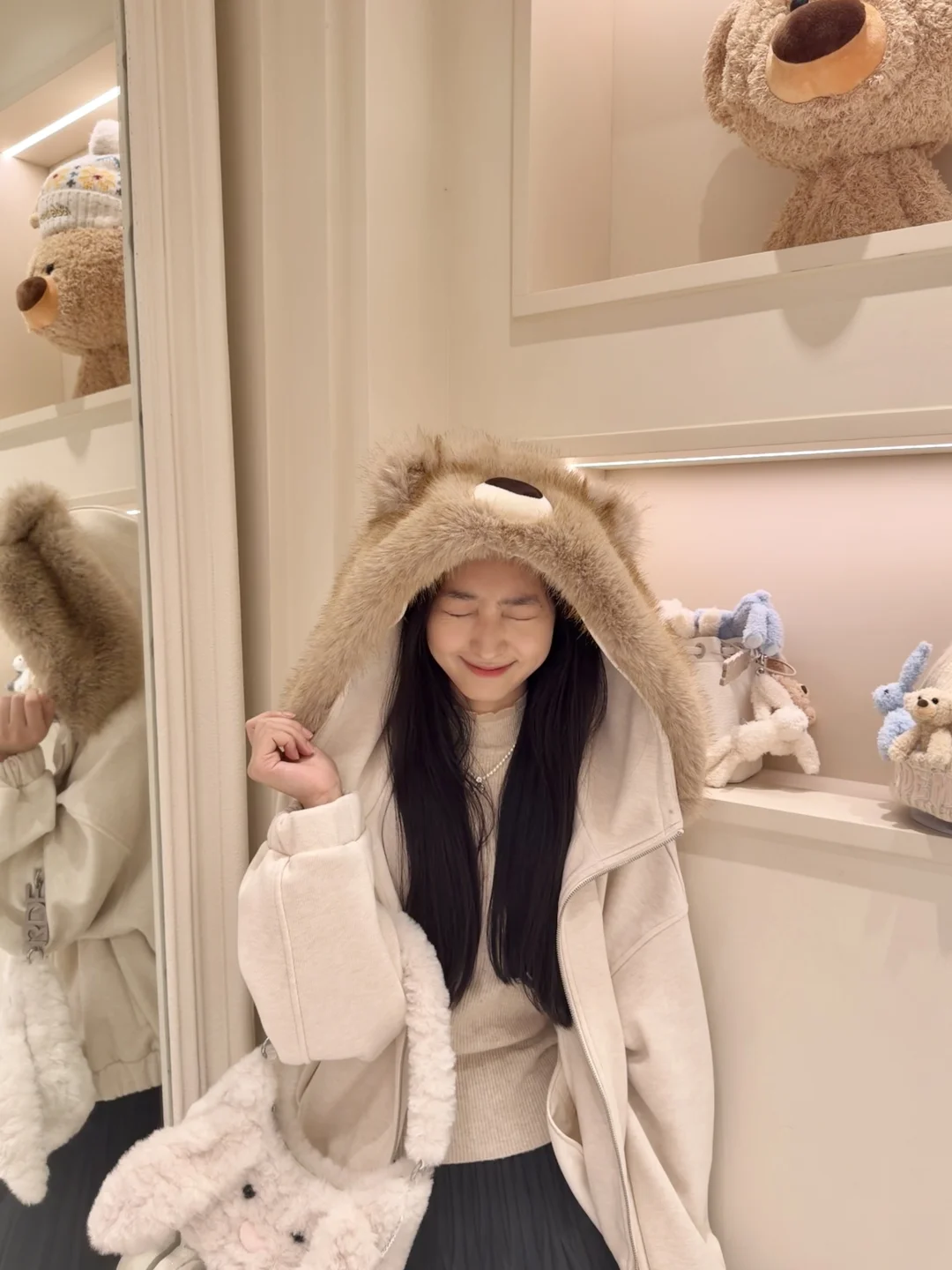 衣服+帽子全是软萌小熊,甜妹氛围感直接拉满,拍照巨出片,年味和可爱感双在线~