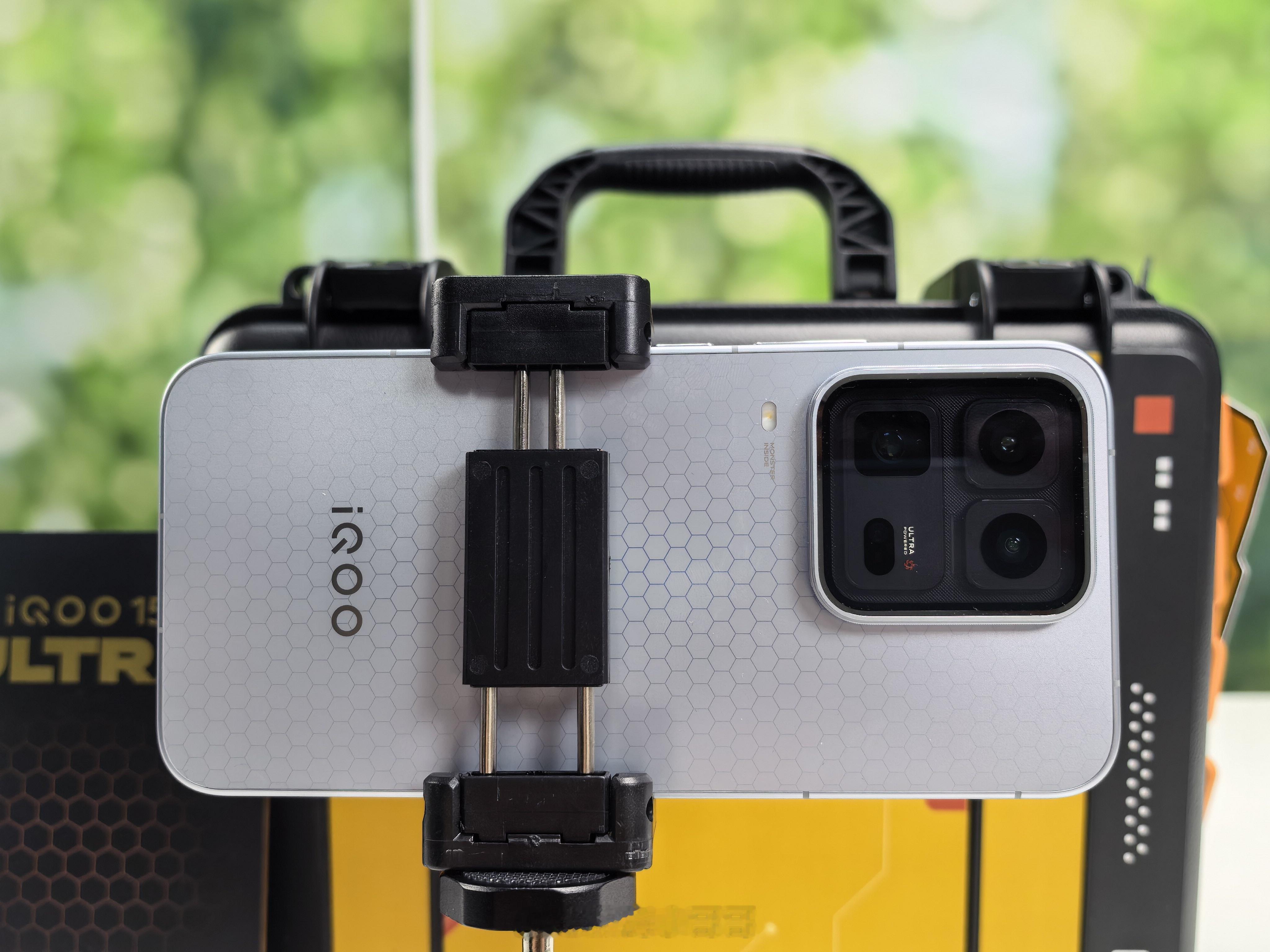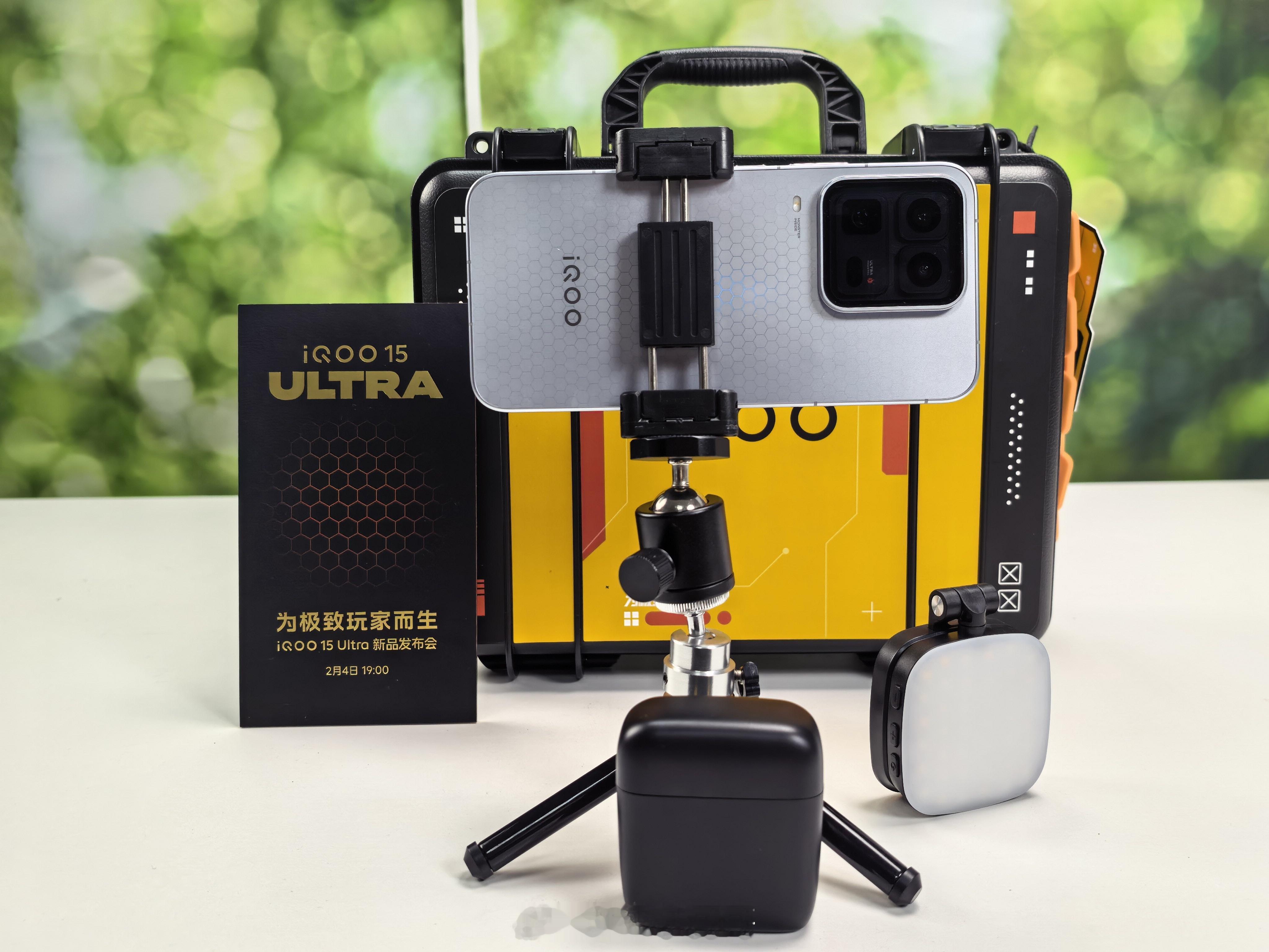 收纳箱配了磁吸补光灯、三角支架、无线麦克风全套游戏直播配件。作为iQOO首款性能Ultra,主打场景化体验的思路不错,游戏党直播党绝对狂喜!