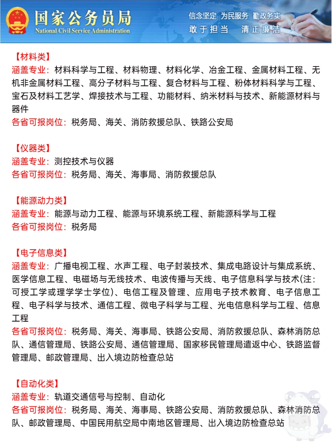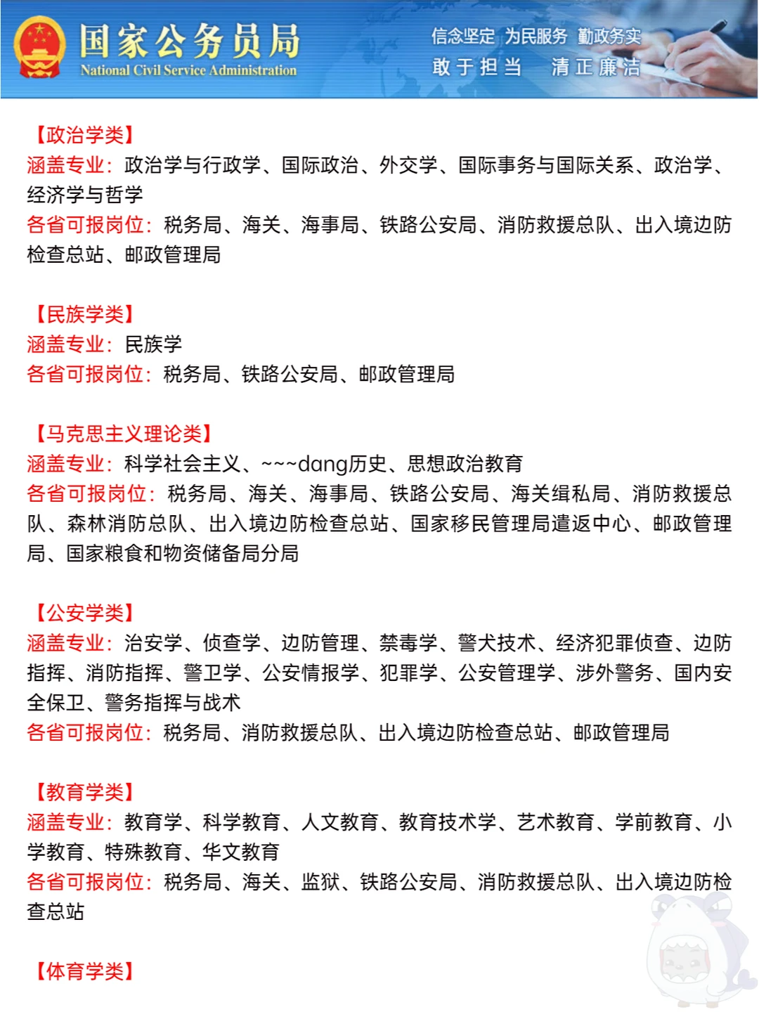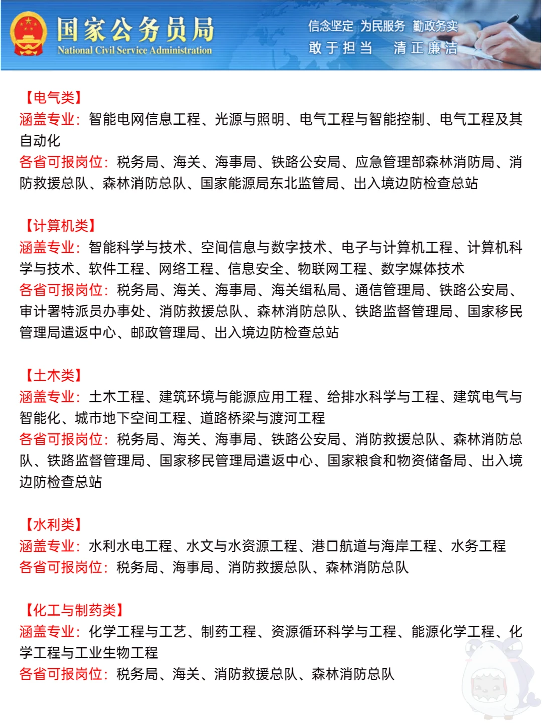 各省可报岗位:税务局、海关、海事局、铁路公安局、海关缉私局、中国民用航空中南地区管理局公安局、应急管理部森林消防局、消防救援总队、森林消防总队、国家粮食和物资储备局、出入境边防检查总站、邮政管理局