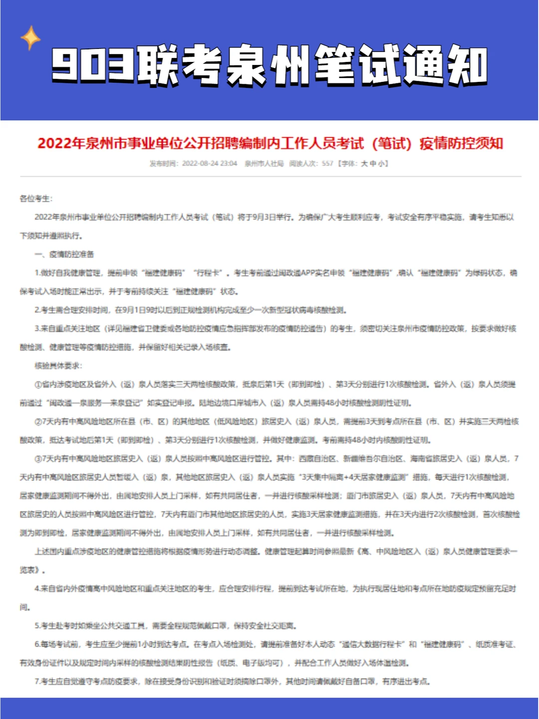 903联考泉州事业单位笔试需携带: