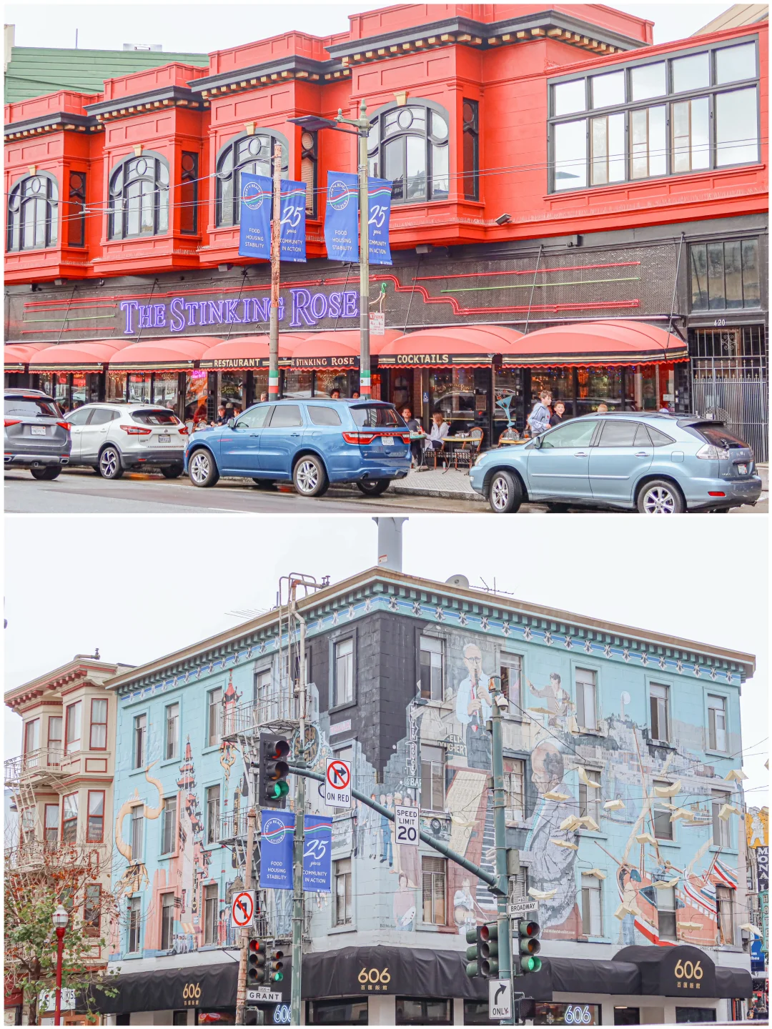 - North Beach Garage停车楼顶楼是宝藏机位,远眺泛美金字塔、Salesforce Tower,近拍唐人街老建筑,入夜后秒变赛博朋克风;