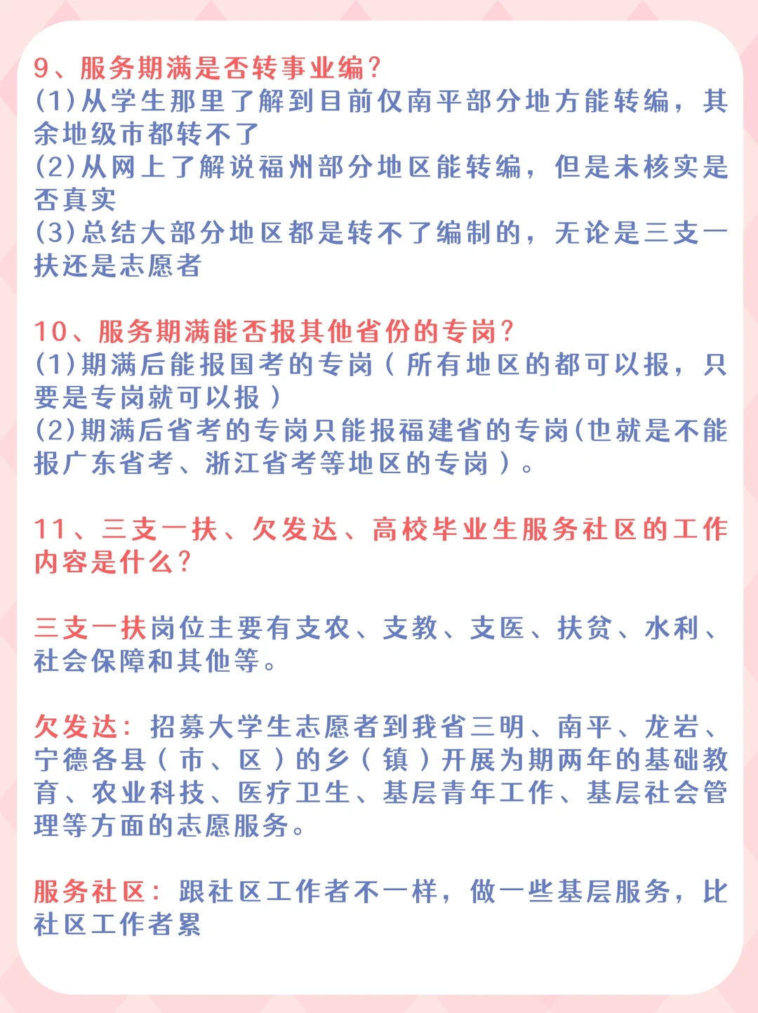 10、三支一扶、欠发达、高校毕业生服务社区的工作内容是什么?