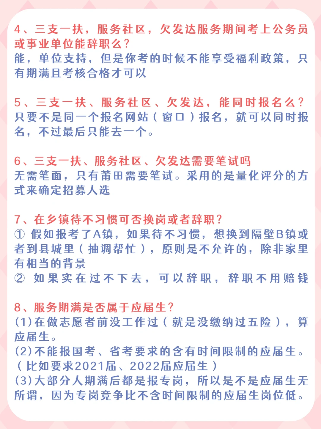 (3)大部分人期满后都是报专岗,所以是不是应届生无所谓,因为专岗竞争比不含时间限制的应届生岗位低。