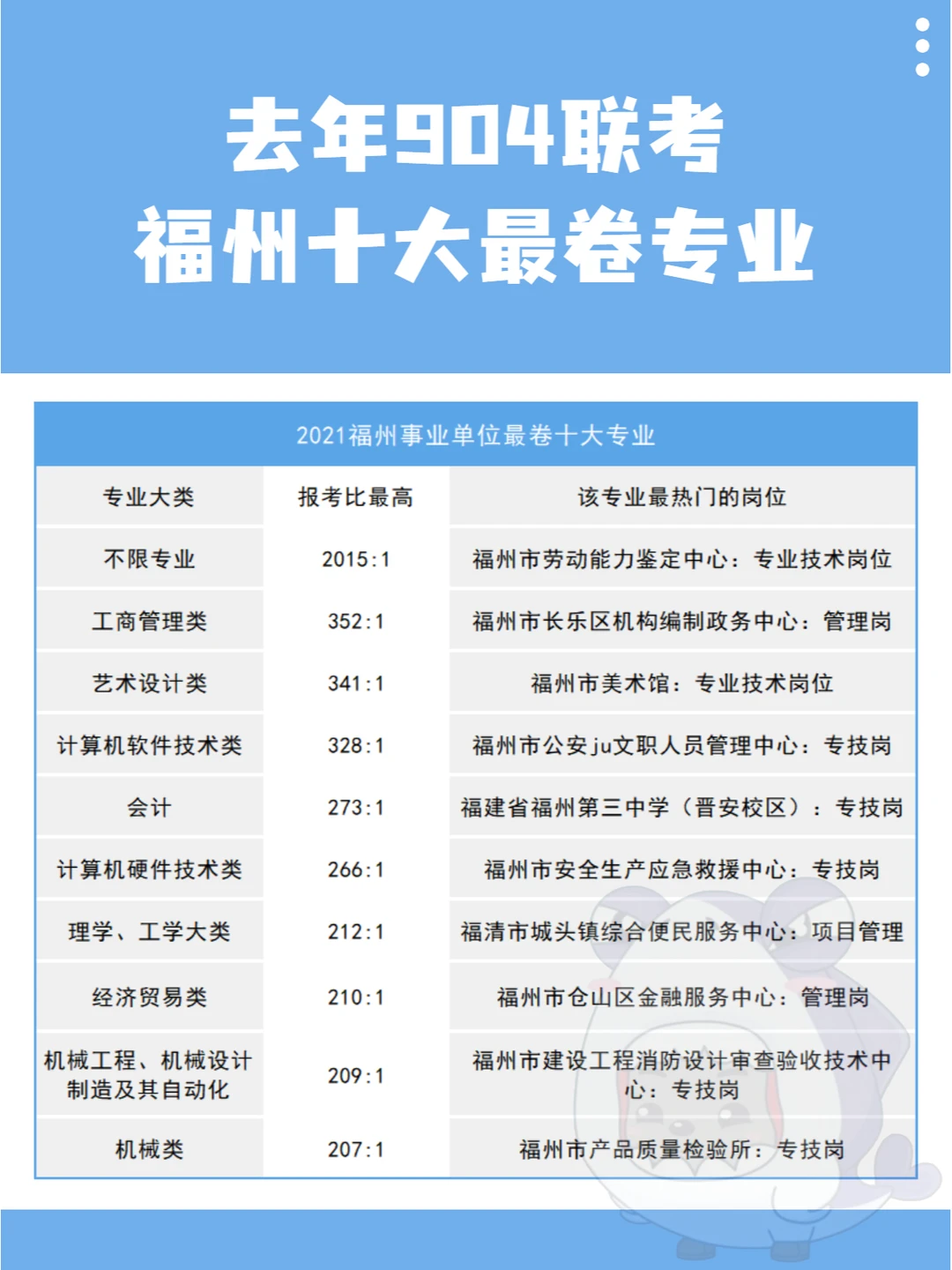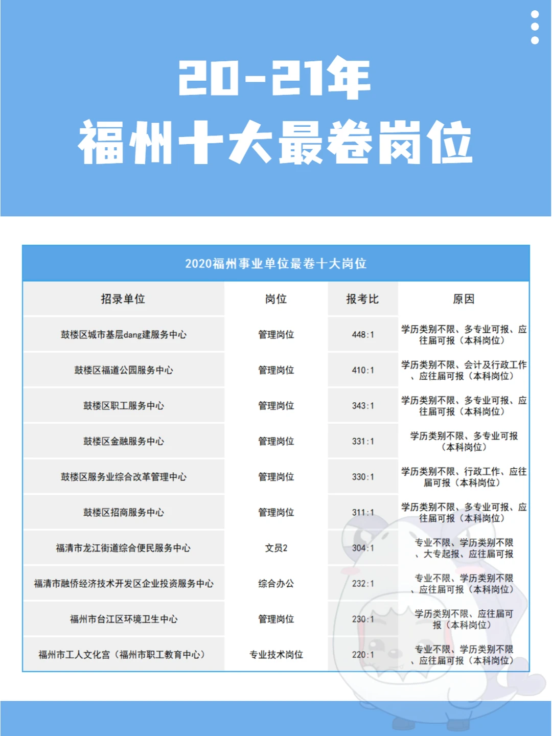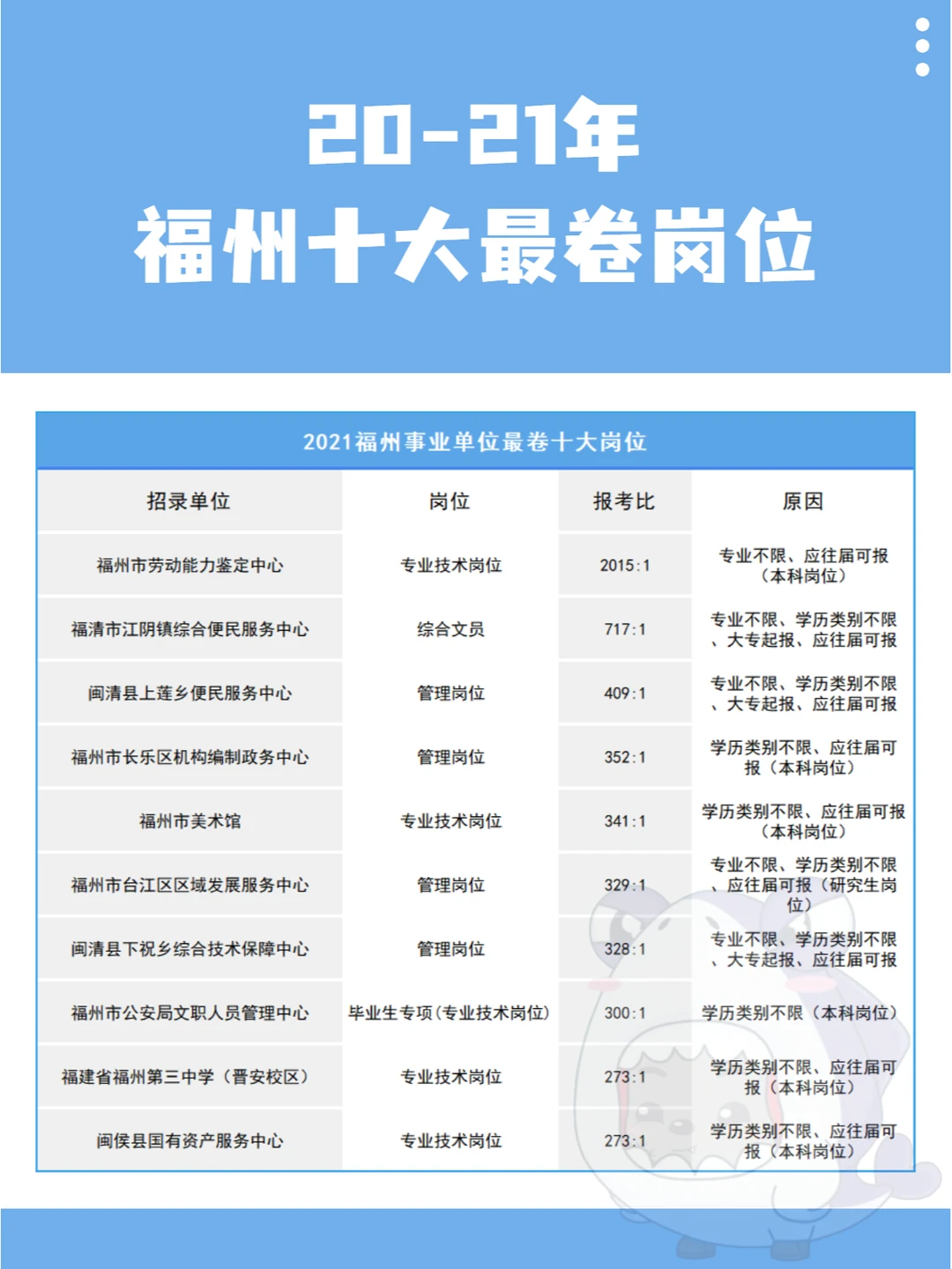 20-21年福州事业单位十大zui卷岗位见图3-4