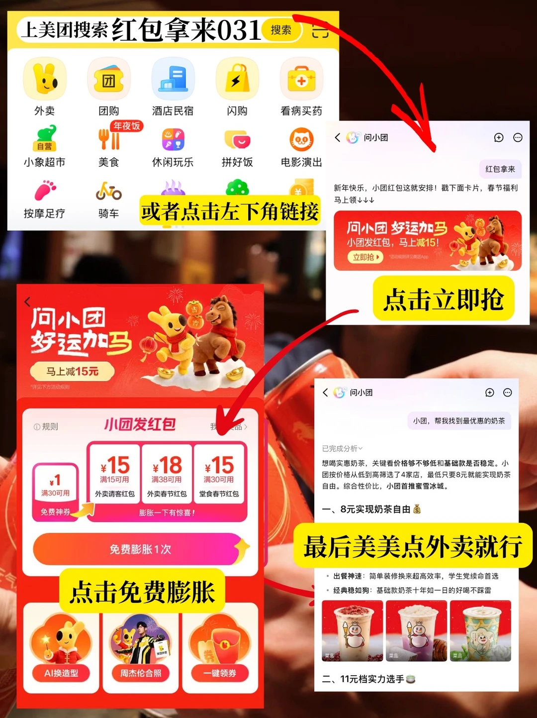 ✔找好吃的就找问小团,2.11-2.25上美团搜索【红包拿来031】或点击左下角,问小团马上减15元!省心省钱两不误