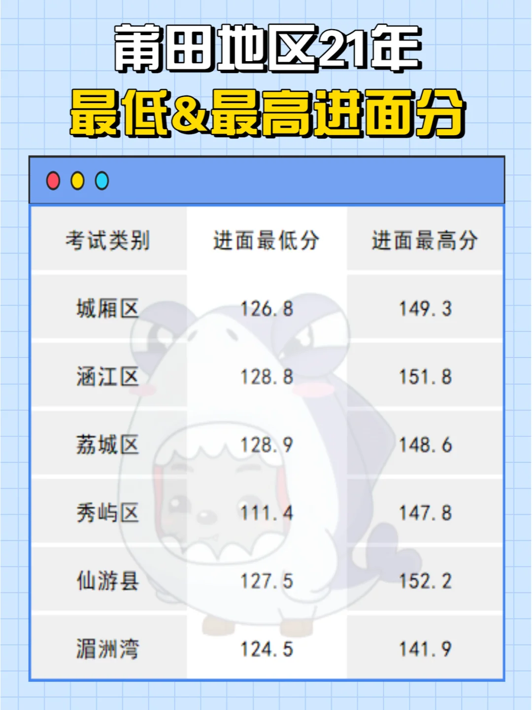 莆田进面分——111.4分