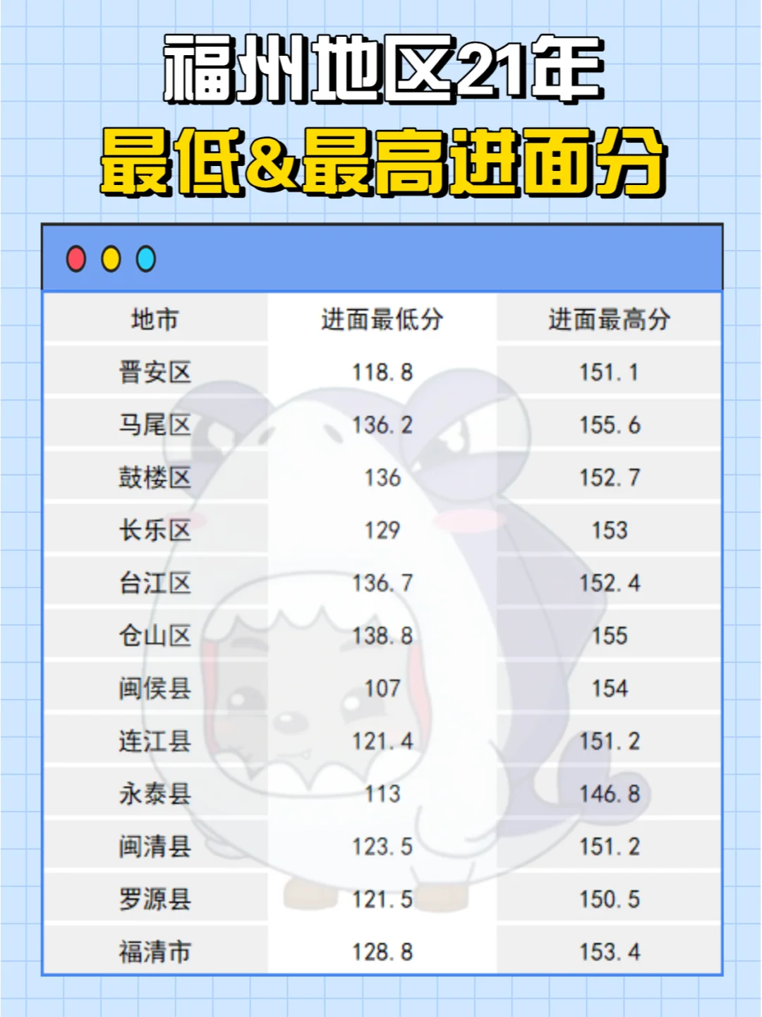 [赞R]2021年福建省考各个市进面zui低分: