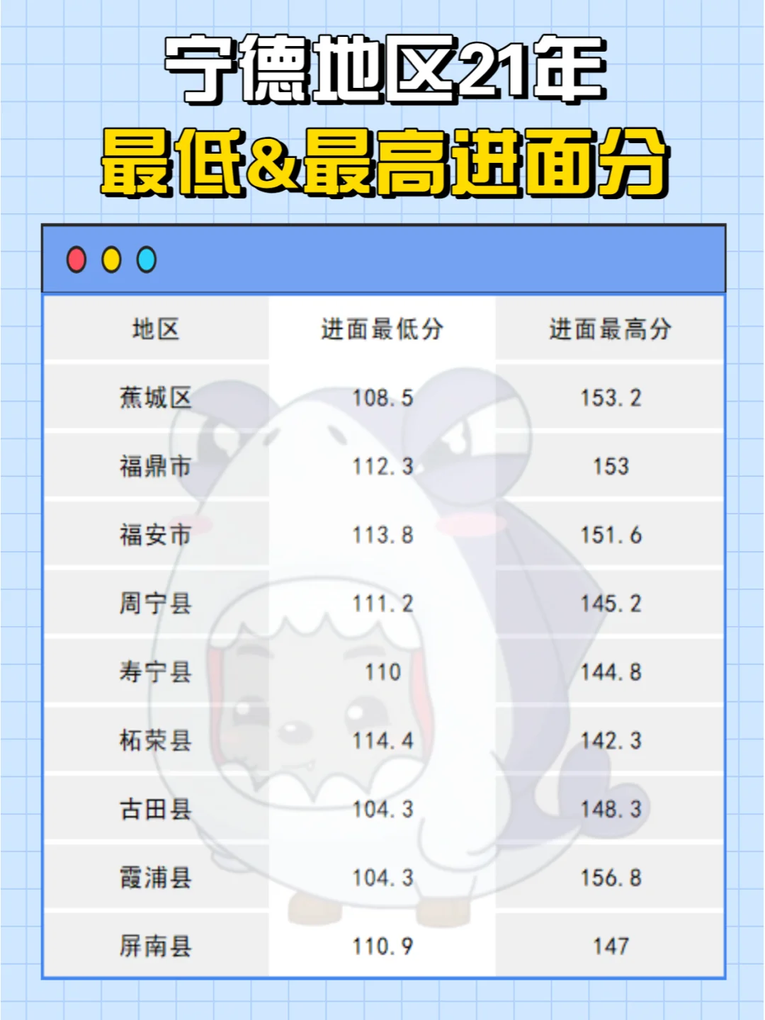 宁德进面分——104.3分