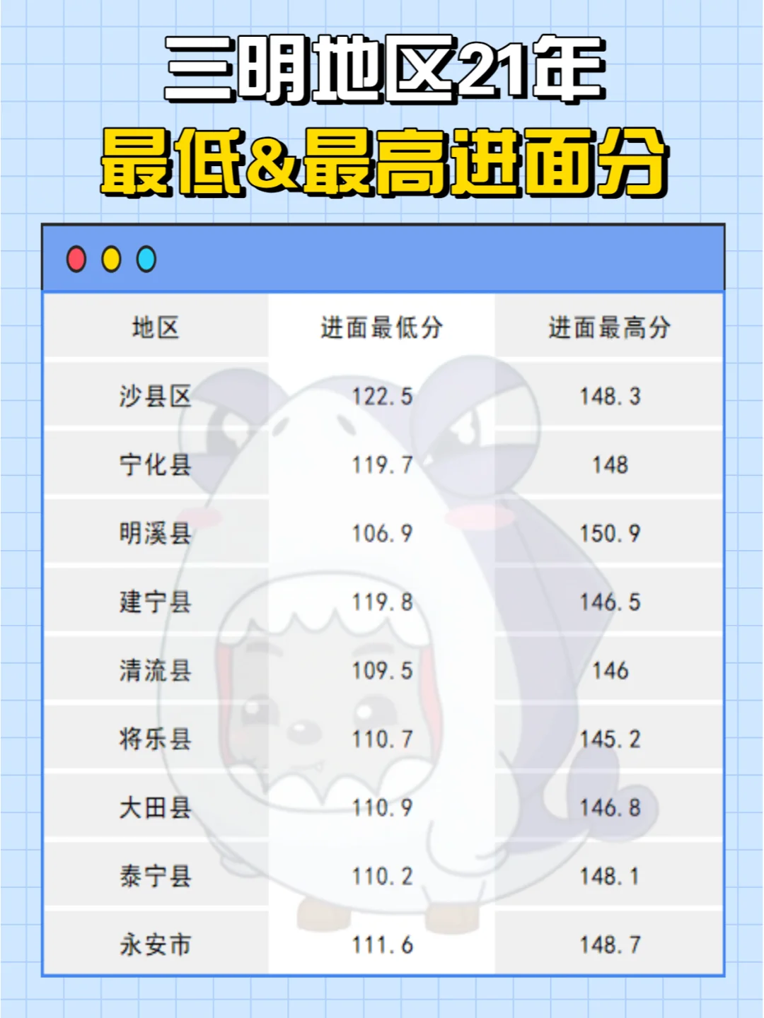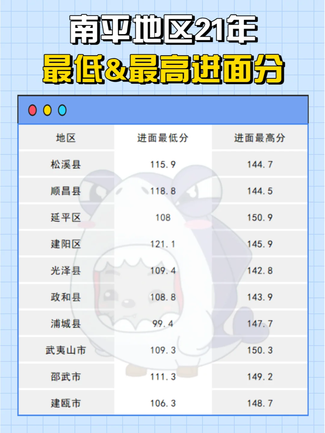 三明进面分——106.9分