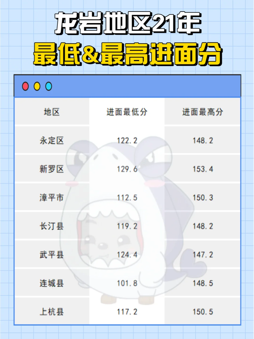 龙岩进面分——101.8分