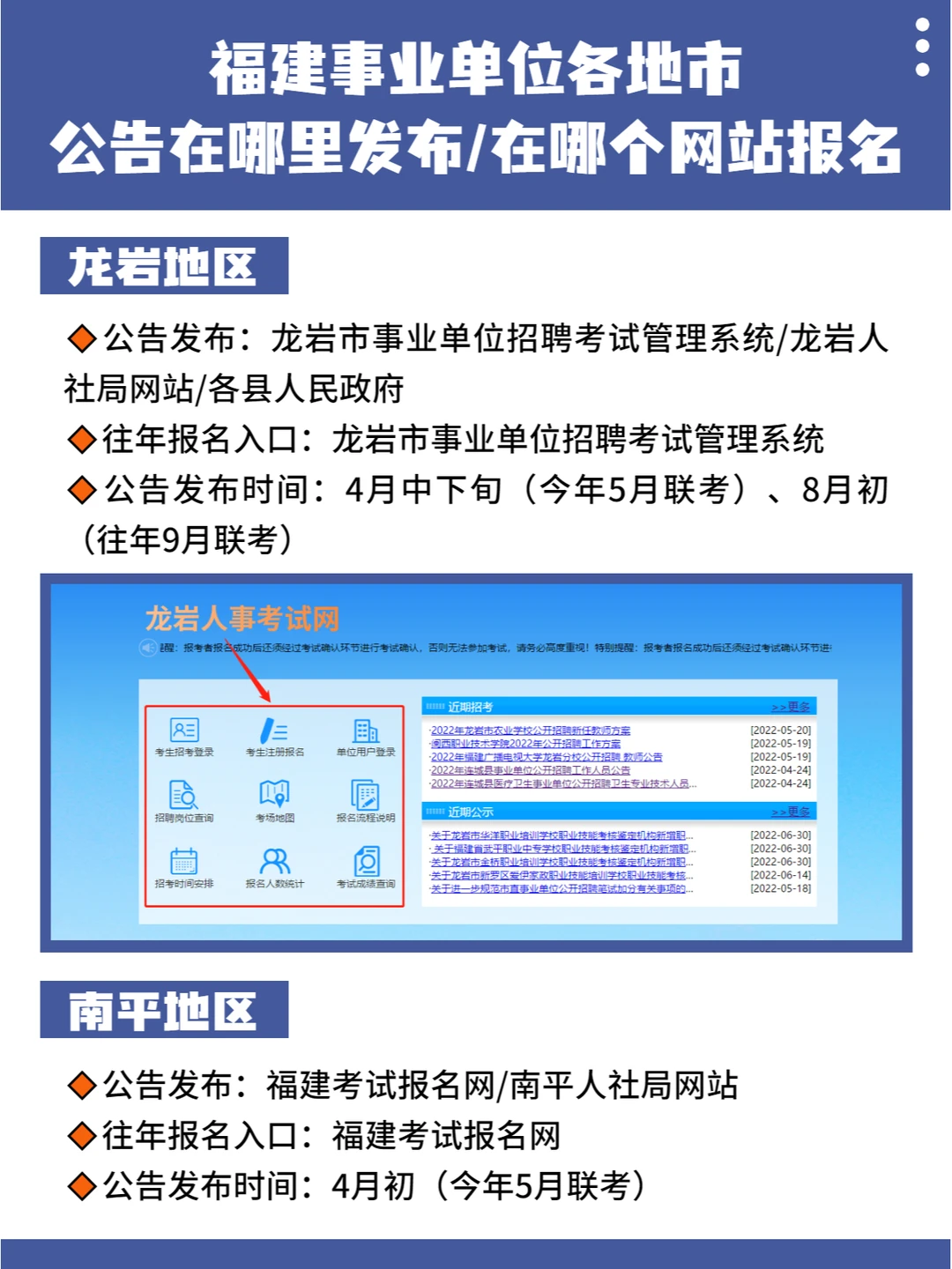 🔸公告发布:福建考试报名网 / 各单位网站