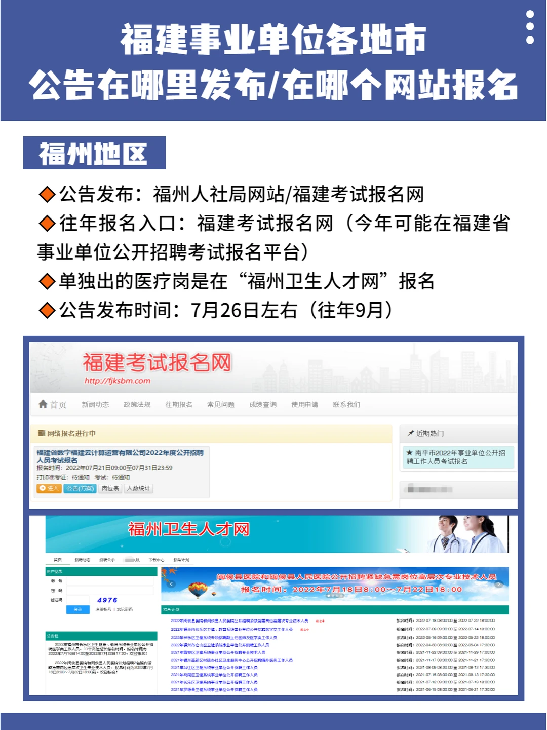 🔸公告发布:福州人社局网站 / 福建考试报名网