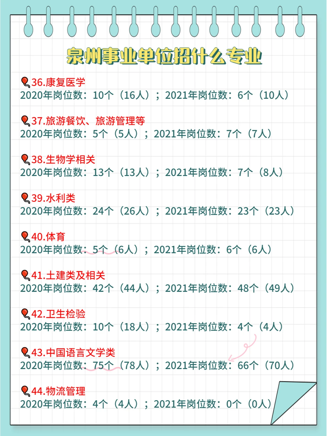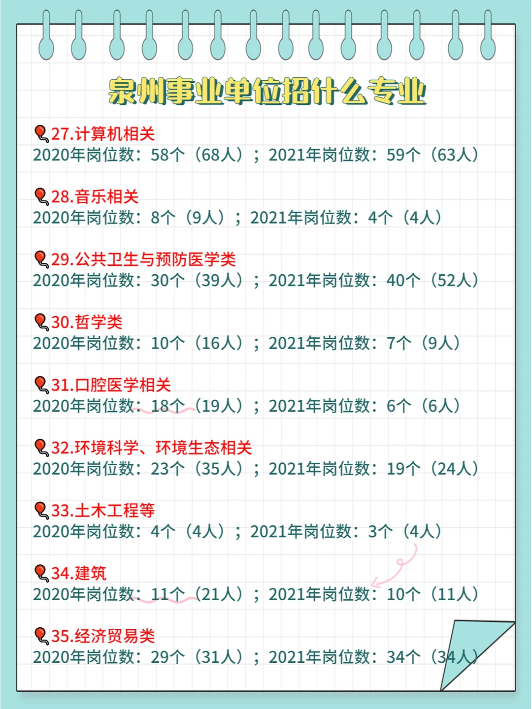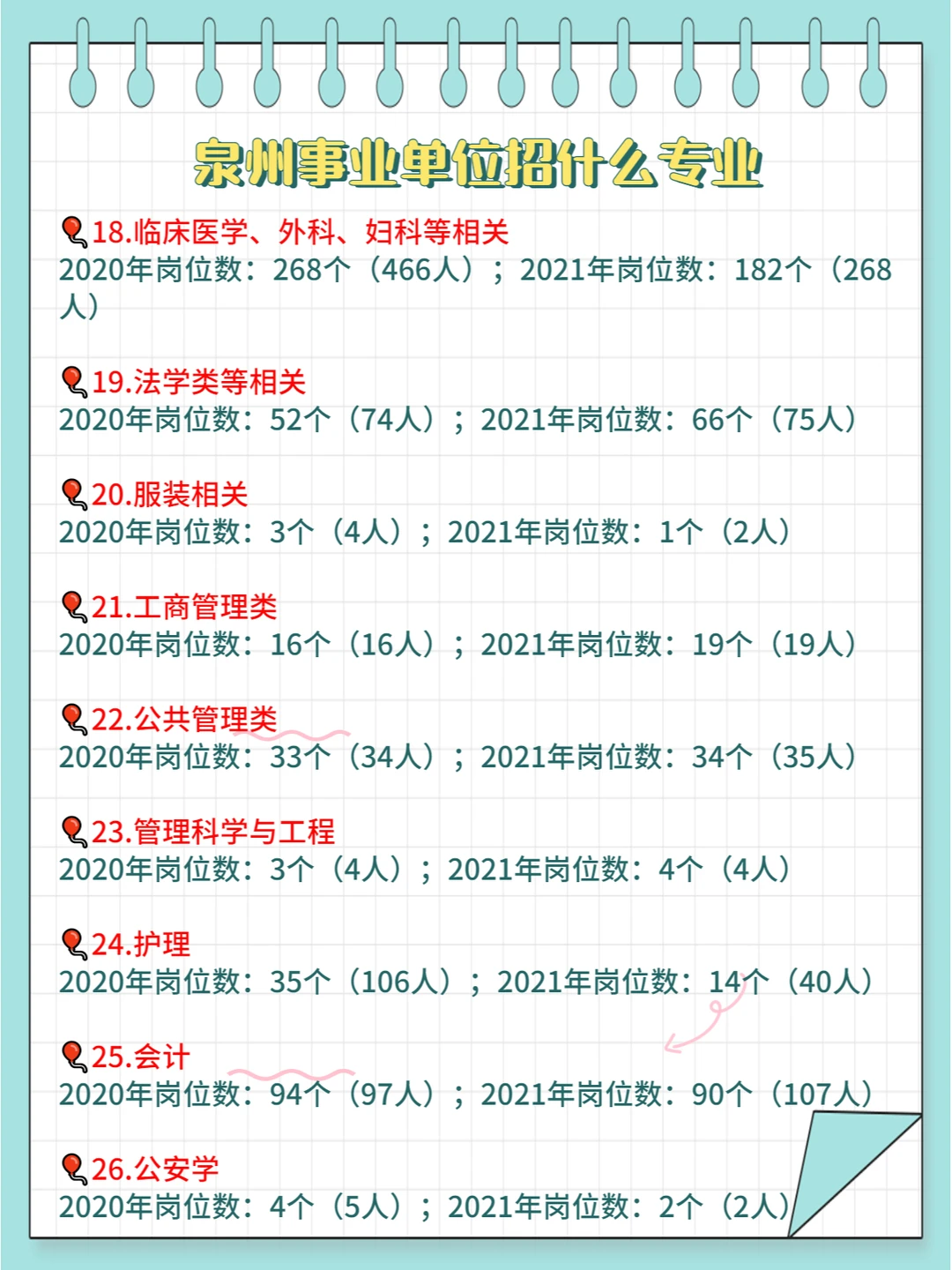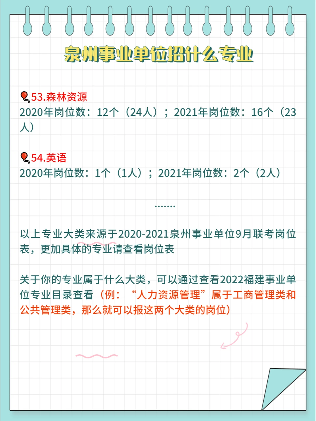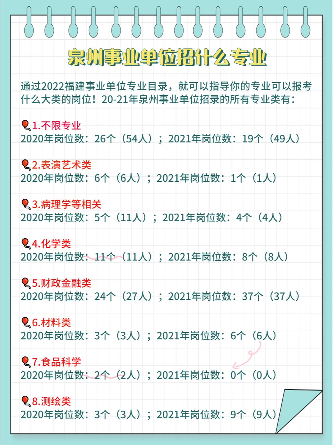 ⭕2020-2021年泉州事业单位招录的所有专业大类具体见上图,具体专业需查看岗位表哦~