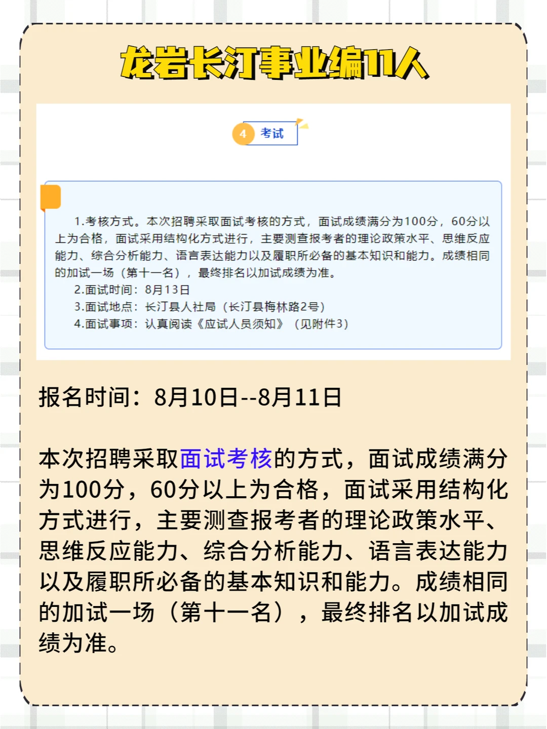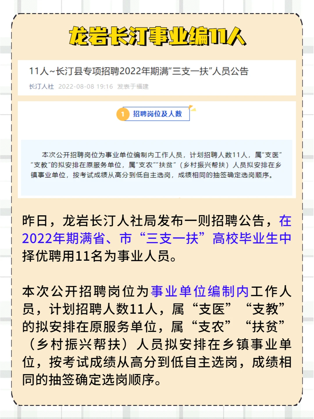 🎈昨日,龙岩长汀人社局发布一则招聘公告,在2022年期满省、市“三支一扶”高校毕业生中择优聘用11名为事业编内人员